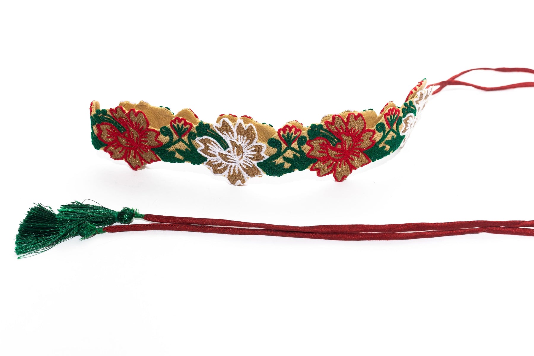 Adorn your ensemble with this sumptuous waist belt. Incorporated resham and mirror work details adorn this piece, perfect for weddings, receptions, navratri, parties and other formal events.