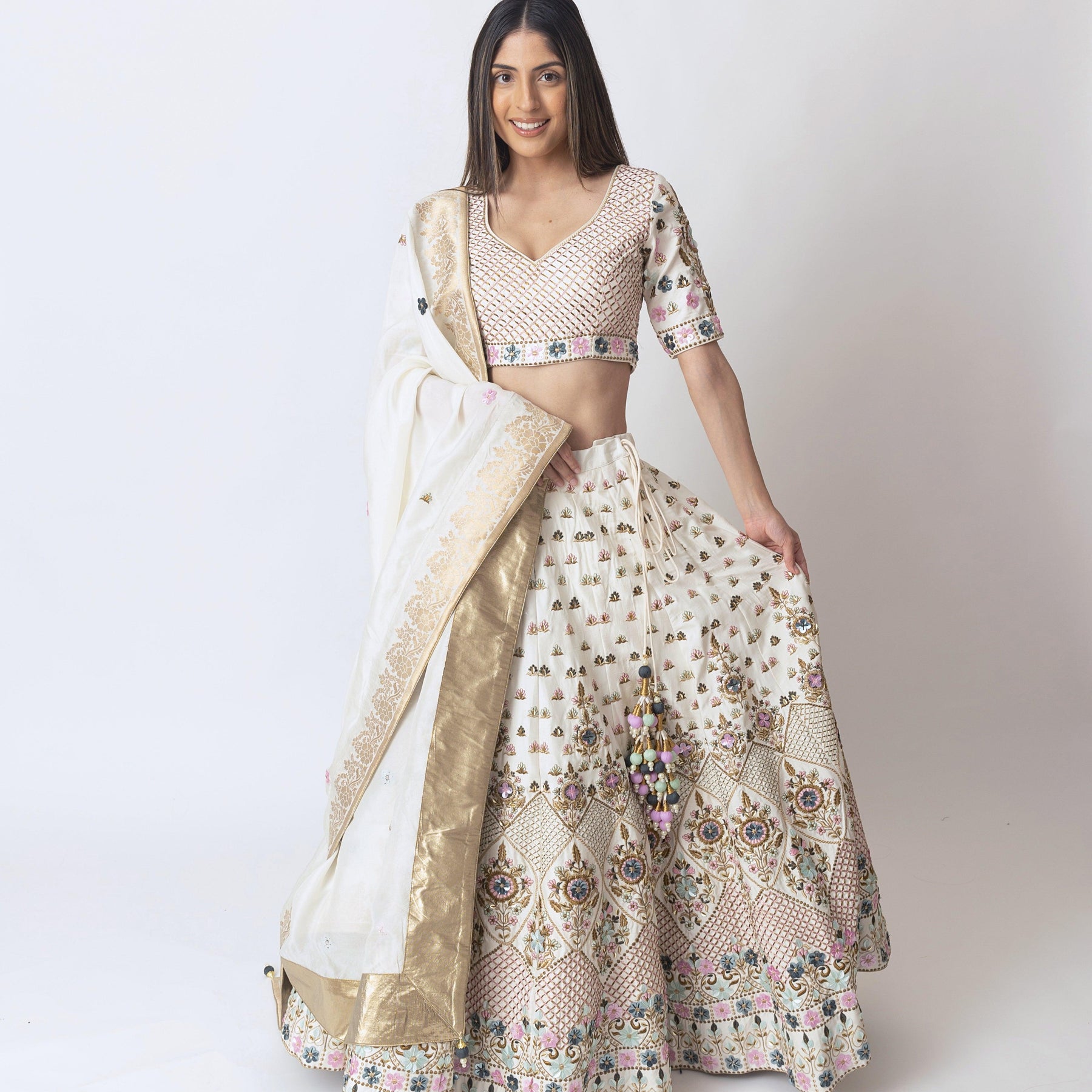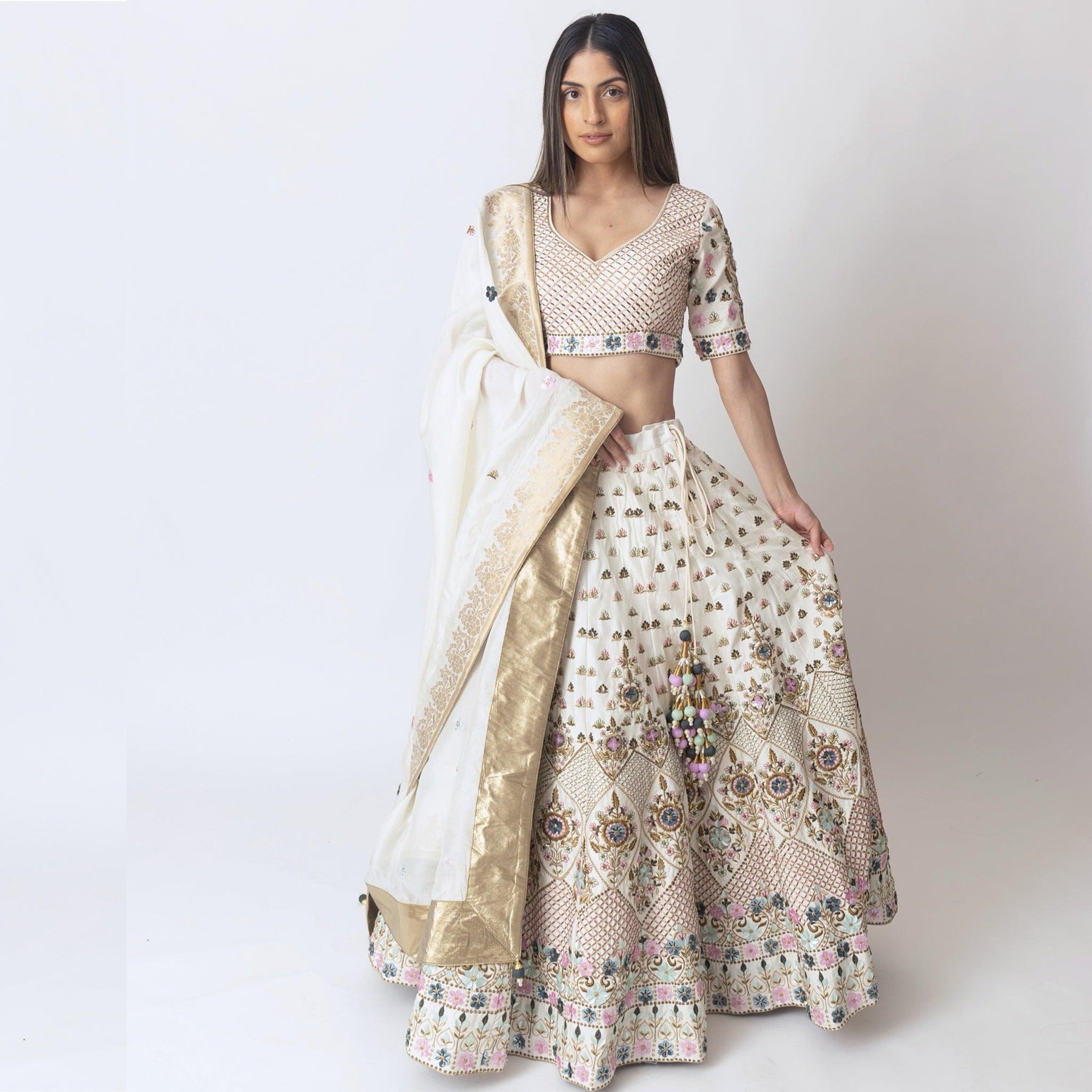 Siddhi White Lehenga Choli With Hand Embroidery - Raas