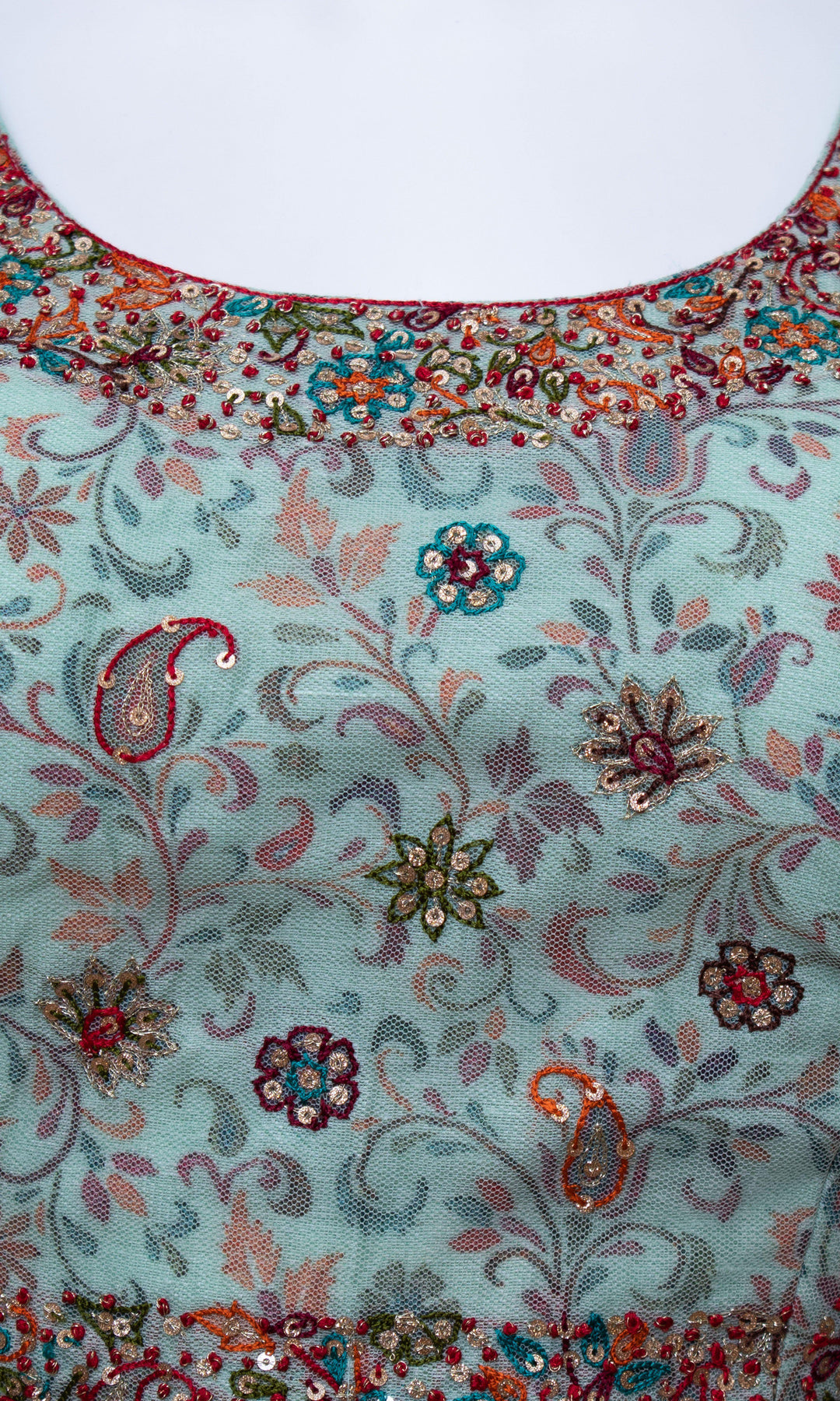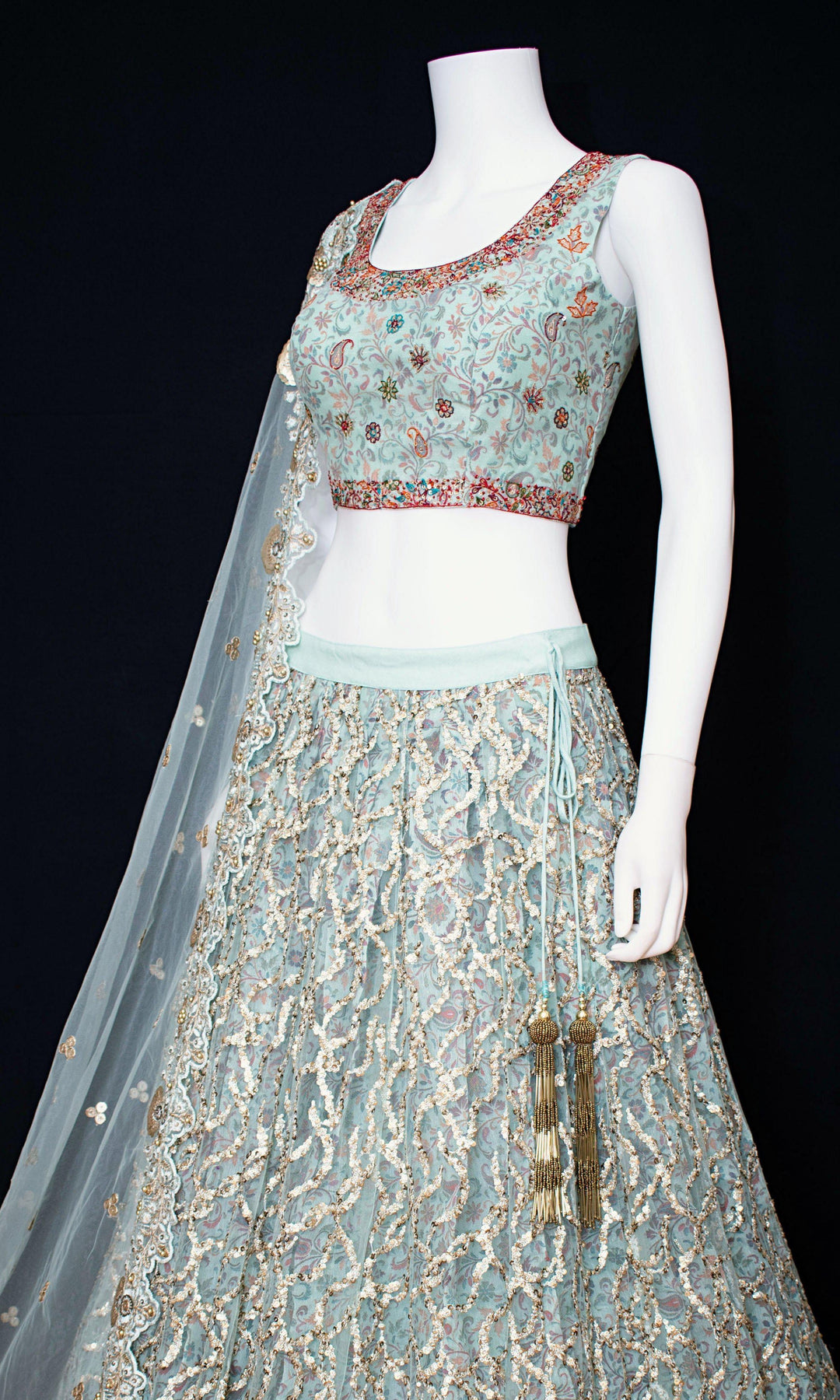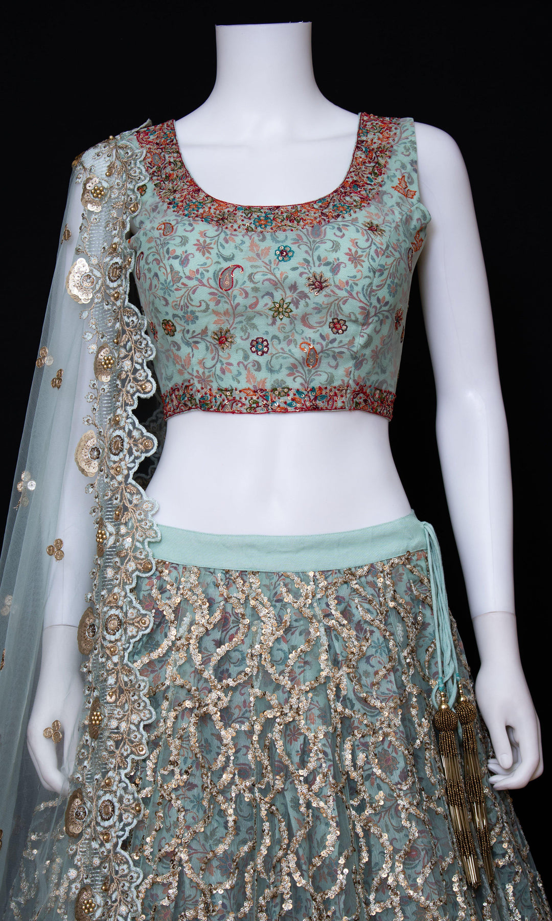 Mint Green Net Lehenga Choli with Sequins Embroidery