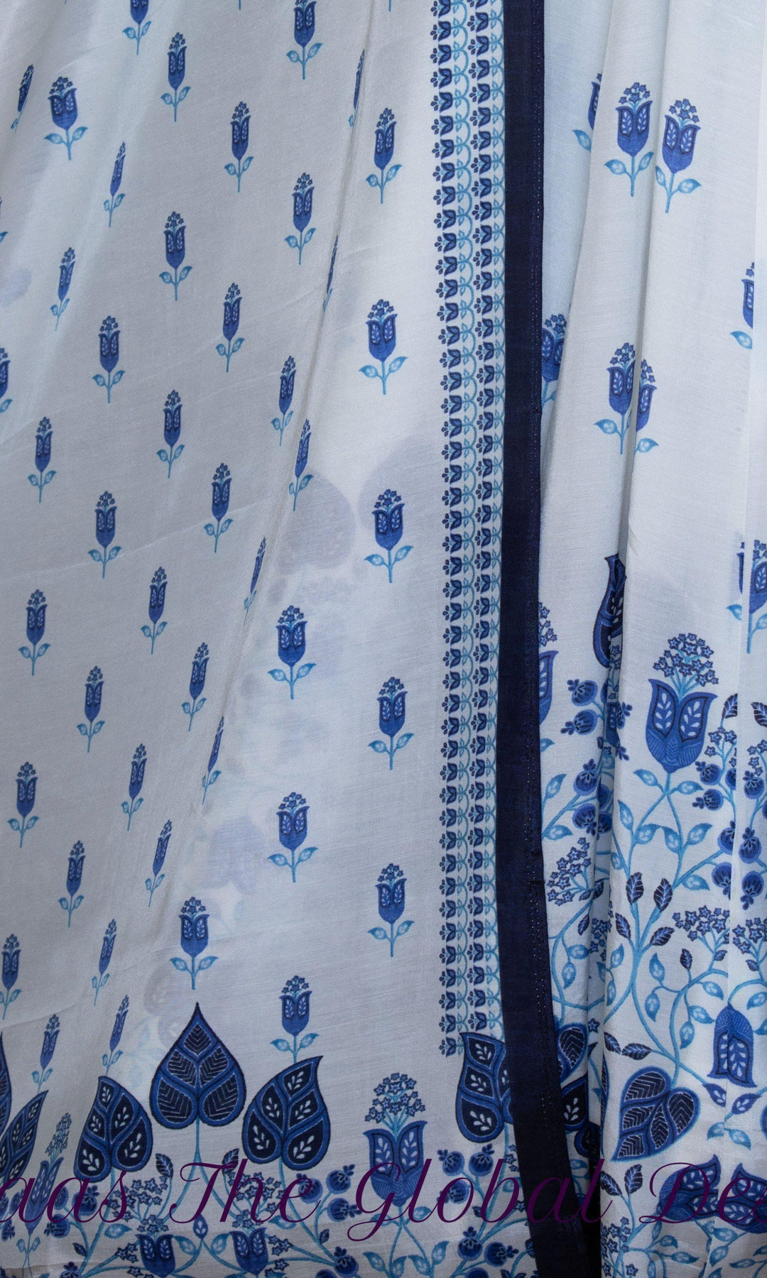 - Blouse: Cutwork & resham embroidery, open back with string tie, sleeveless, fully lined