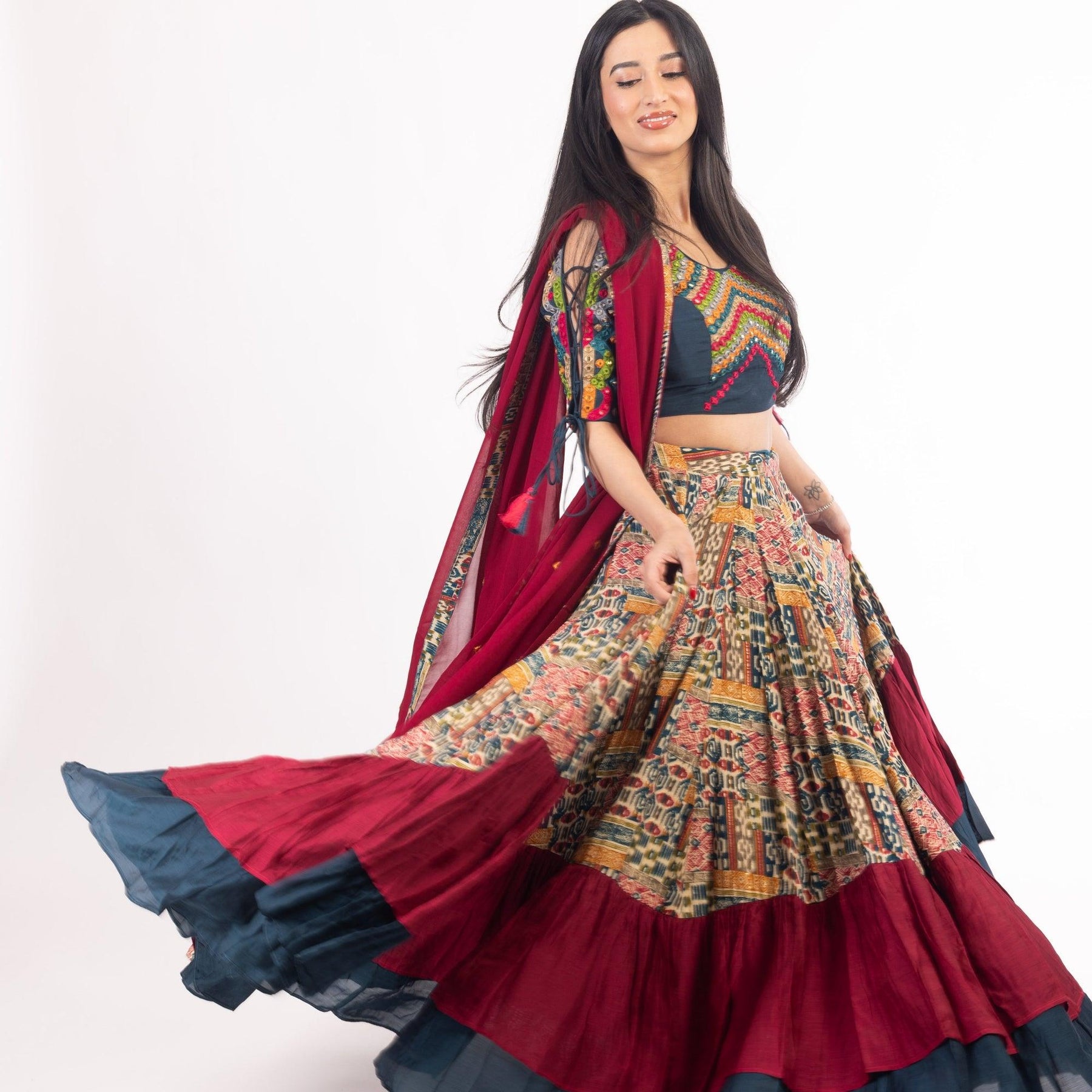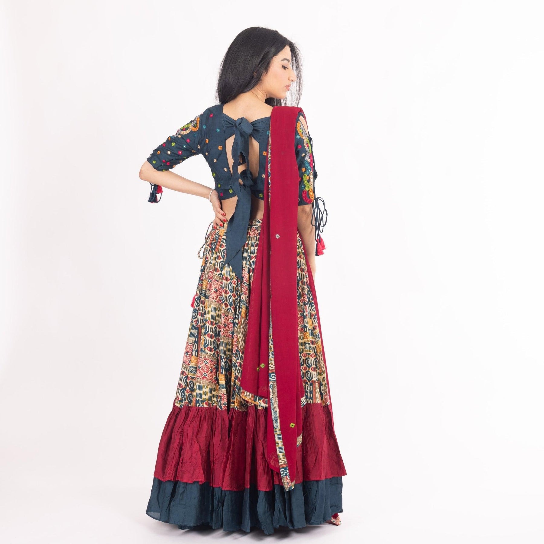 - Components: Blouse, Lehenga, & Dupatta
