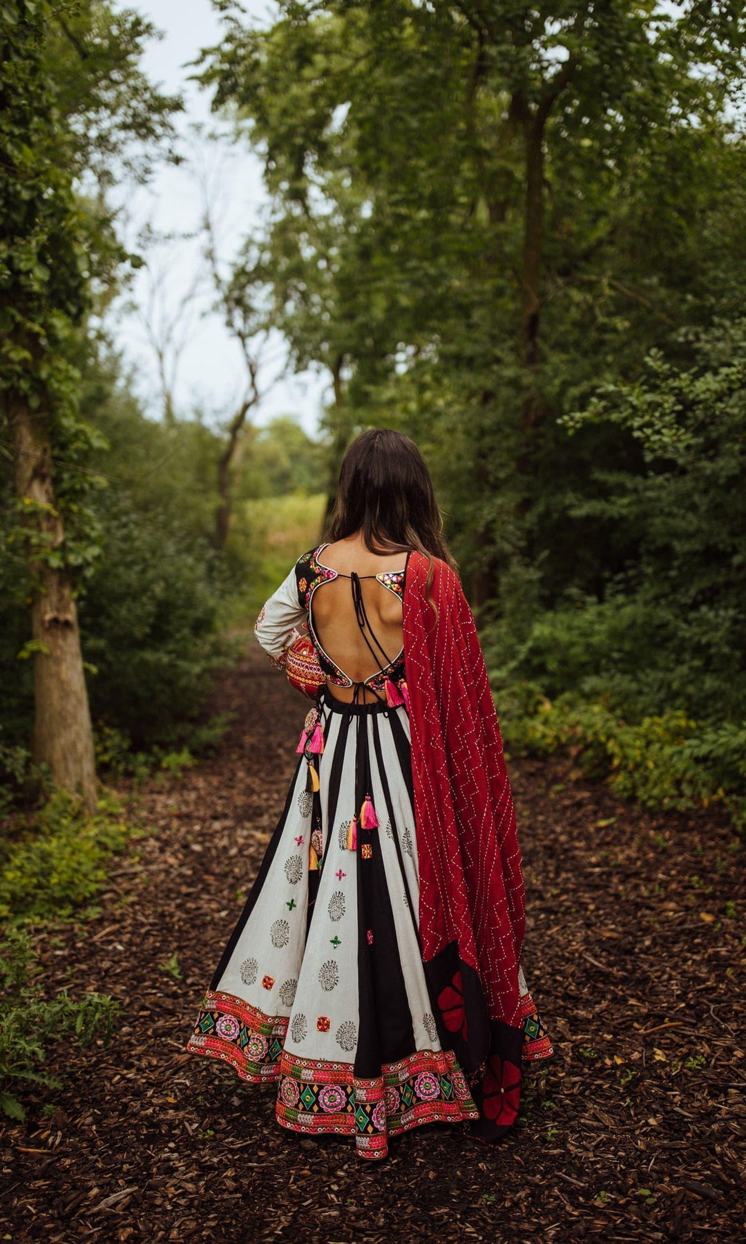 - Components: Blouse, Chaniya, & Dupatta