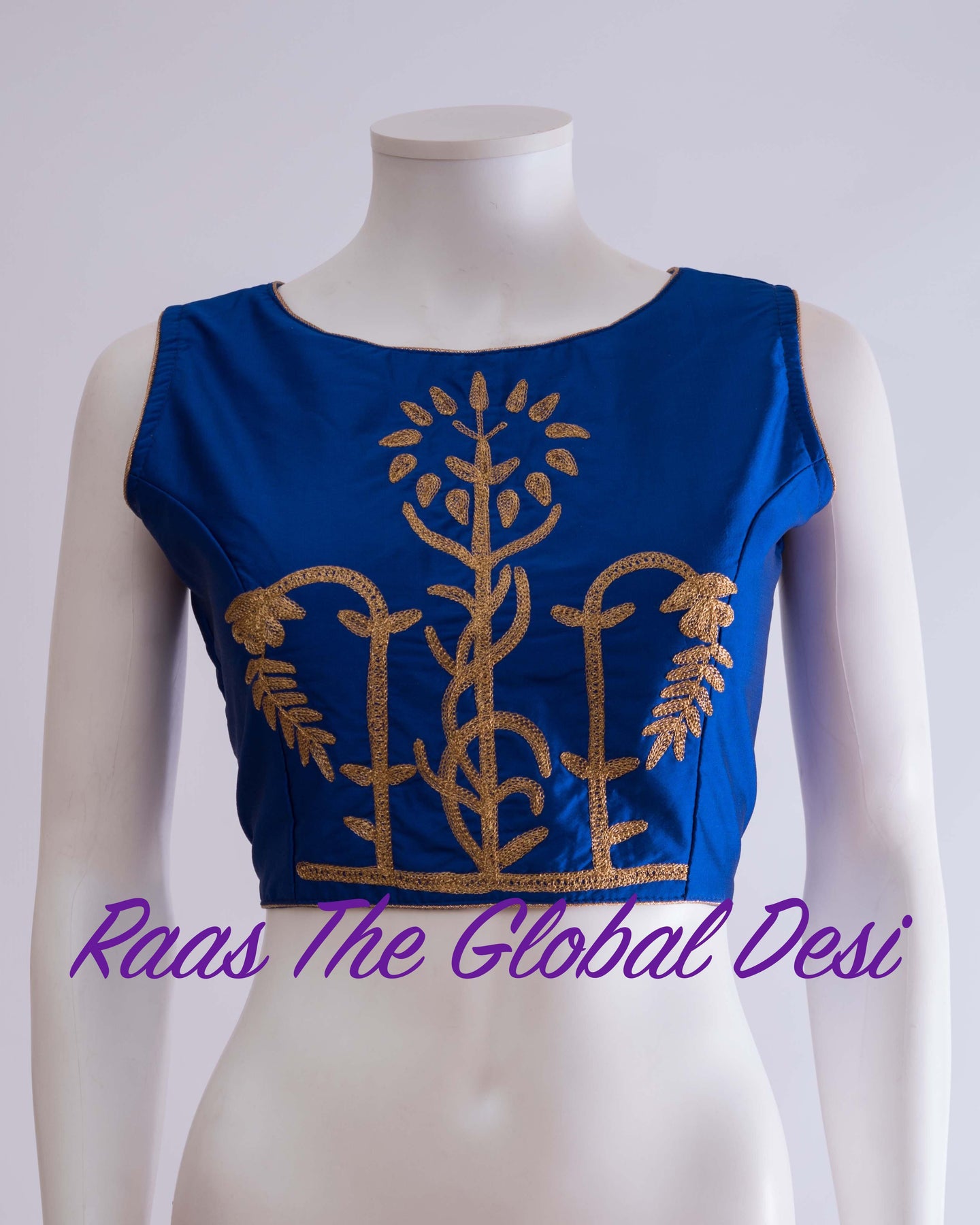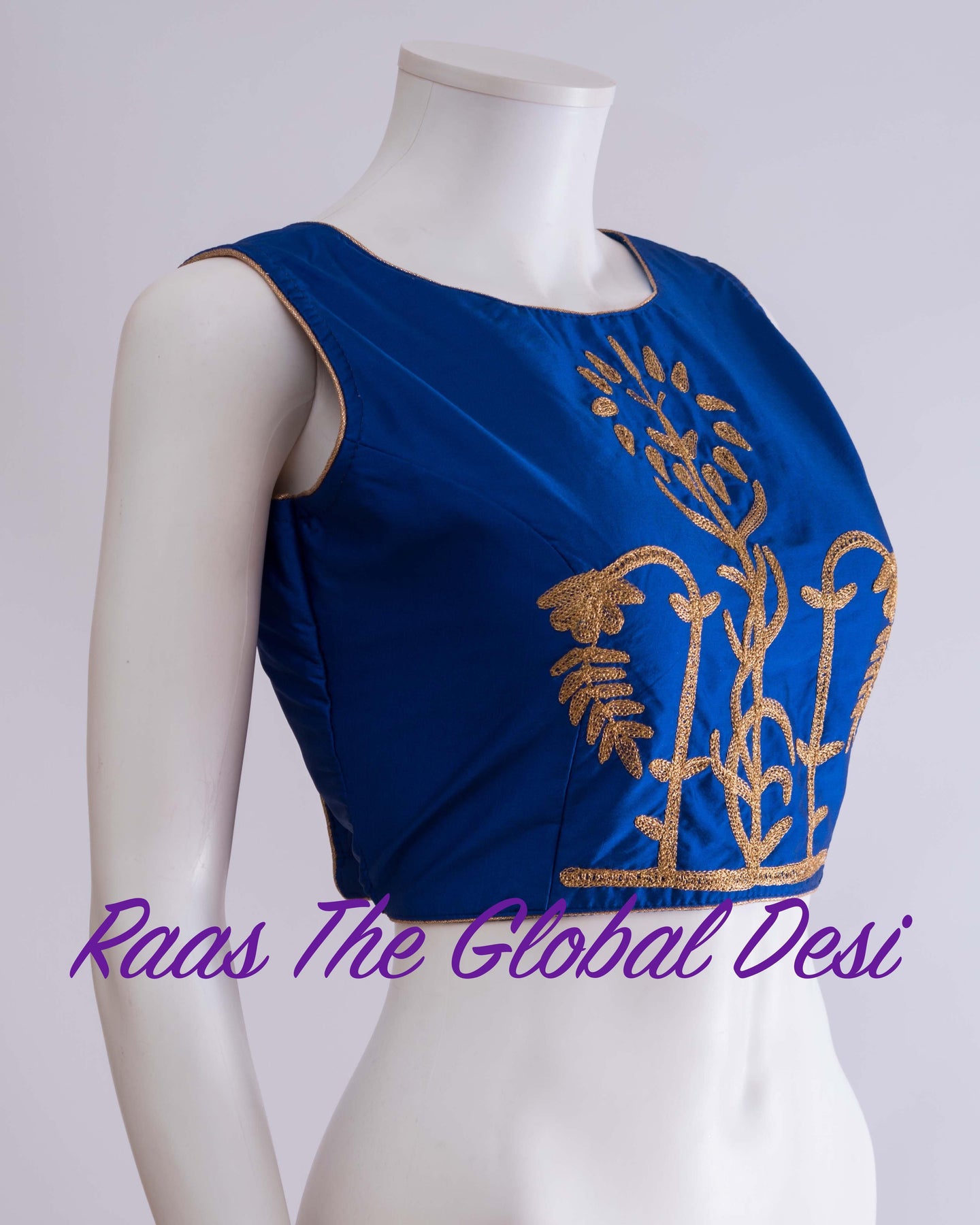 BLUE SILK  BLOUSE WITH EMBROIDERY