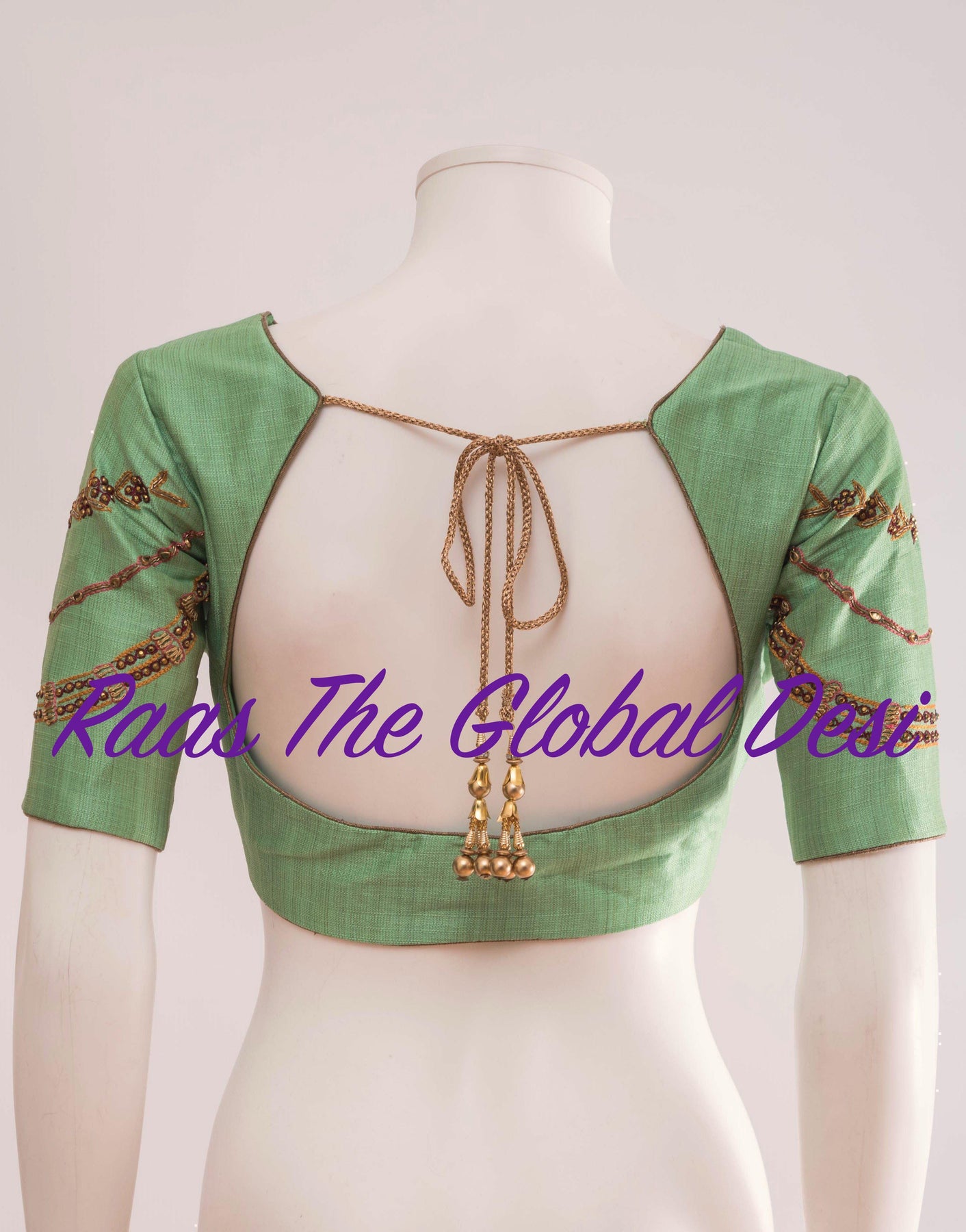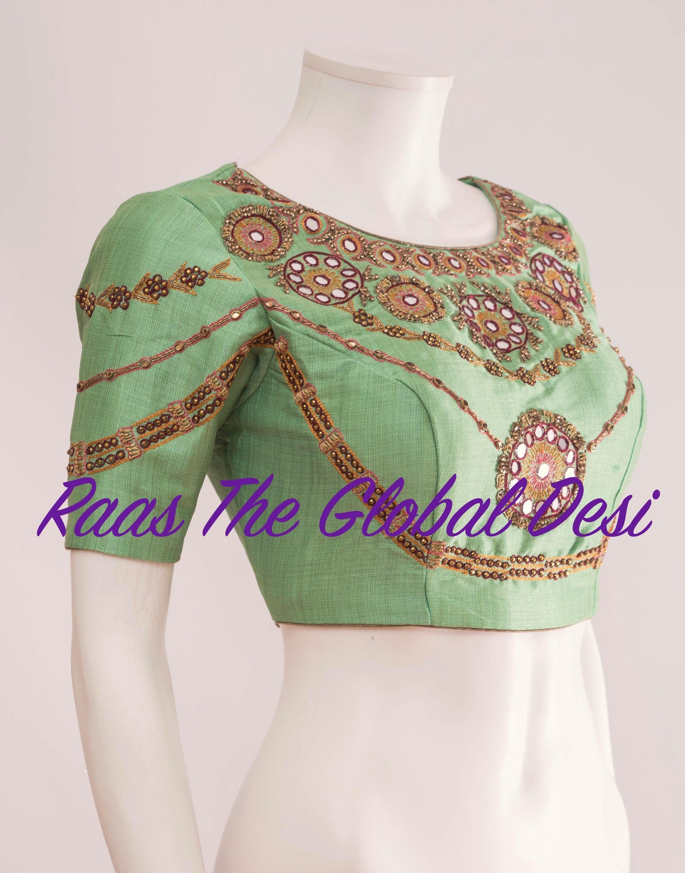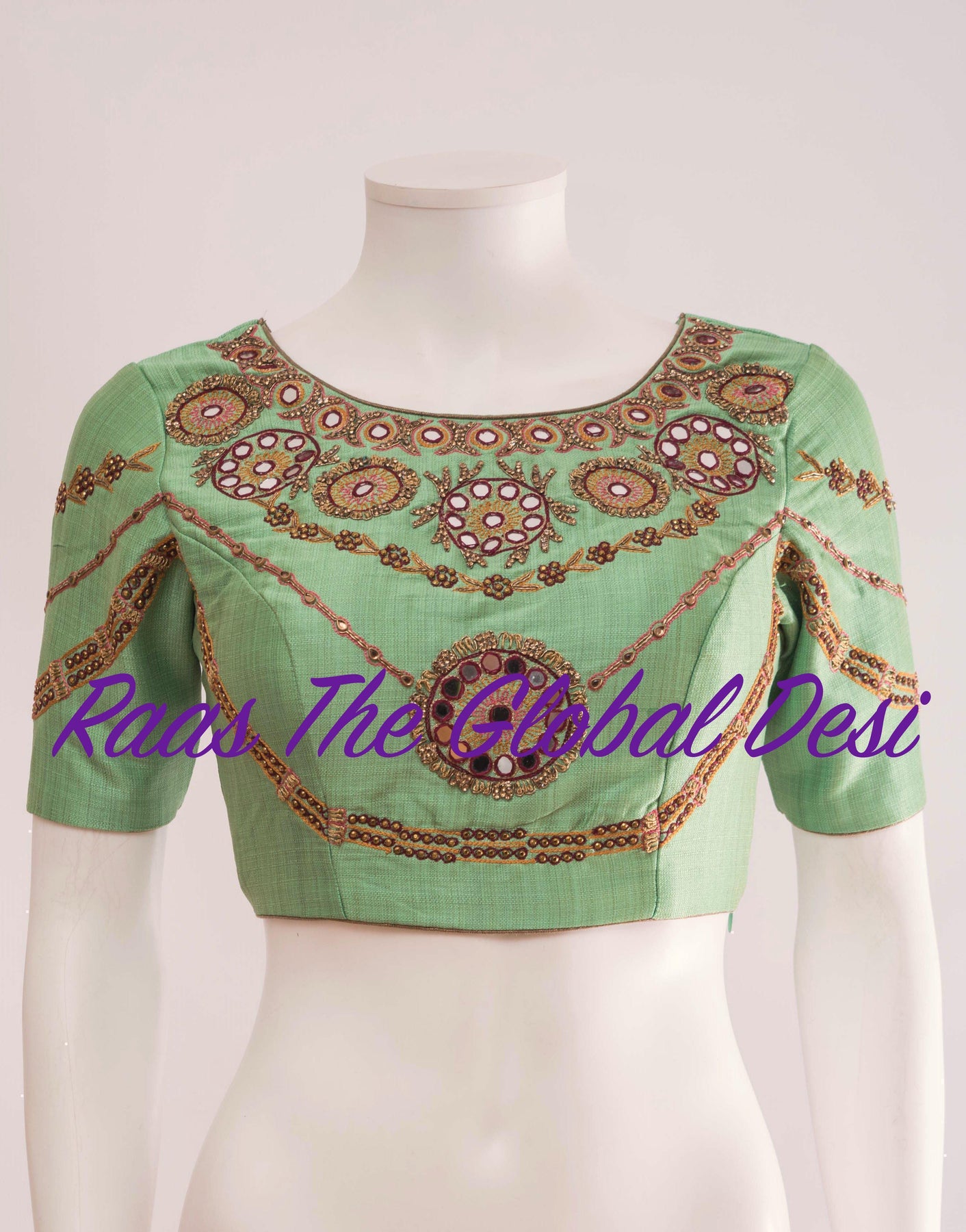 SILK  HANDWORK BLOUSE WITH MIRROR WORK, STONE WORK RESHAM WORK