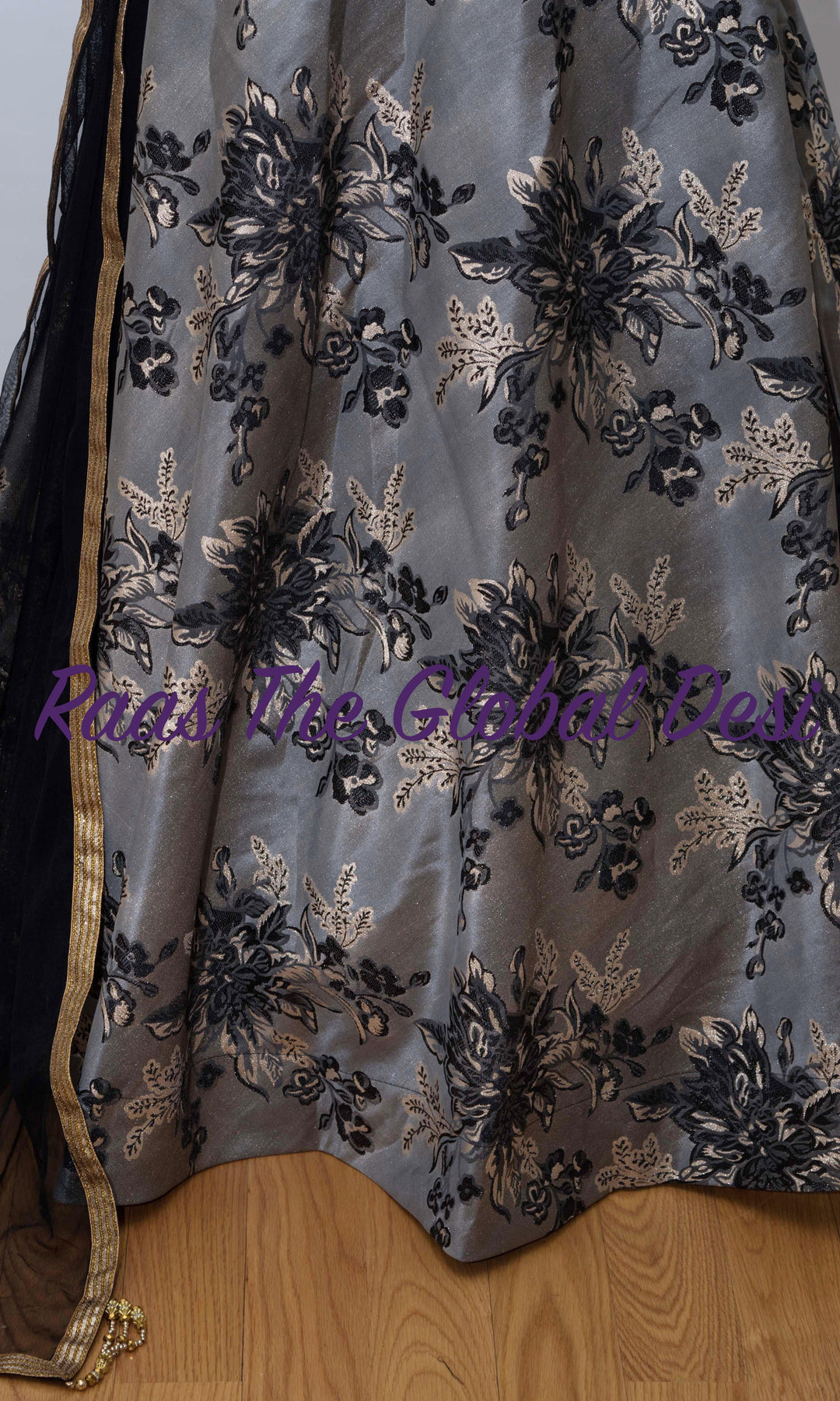 - Fabric: Jacquard Silk (Lehenga); Velvet (Blouse), Net (Dupatta)