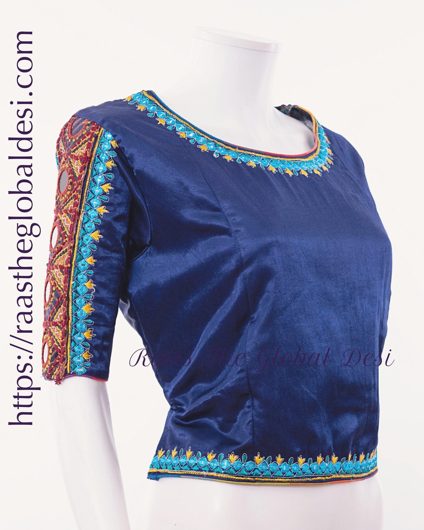 Gaji Silk handicrafted blouse with embroidery and mirror work