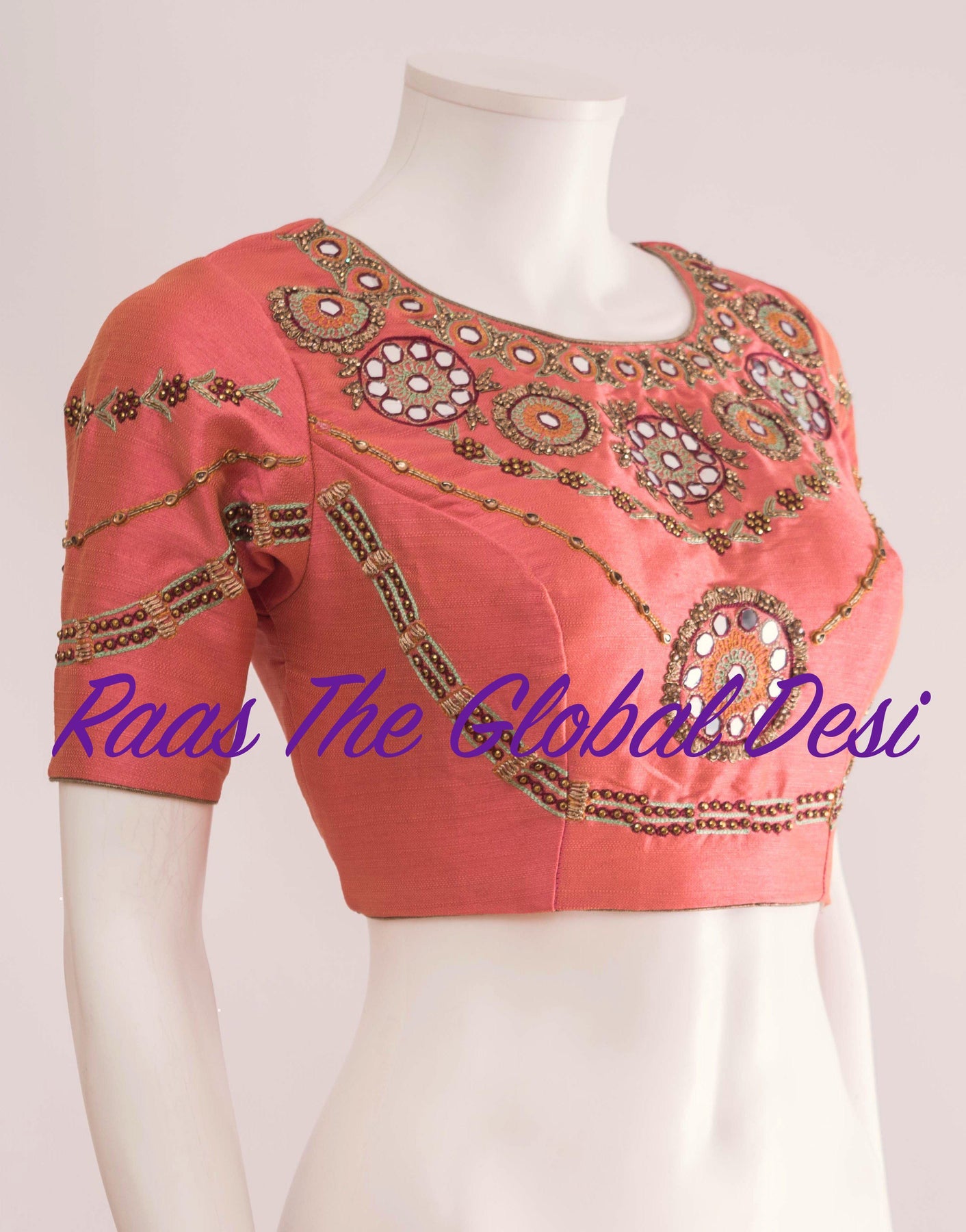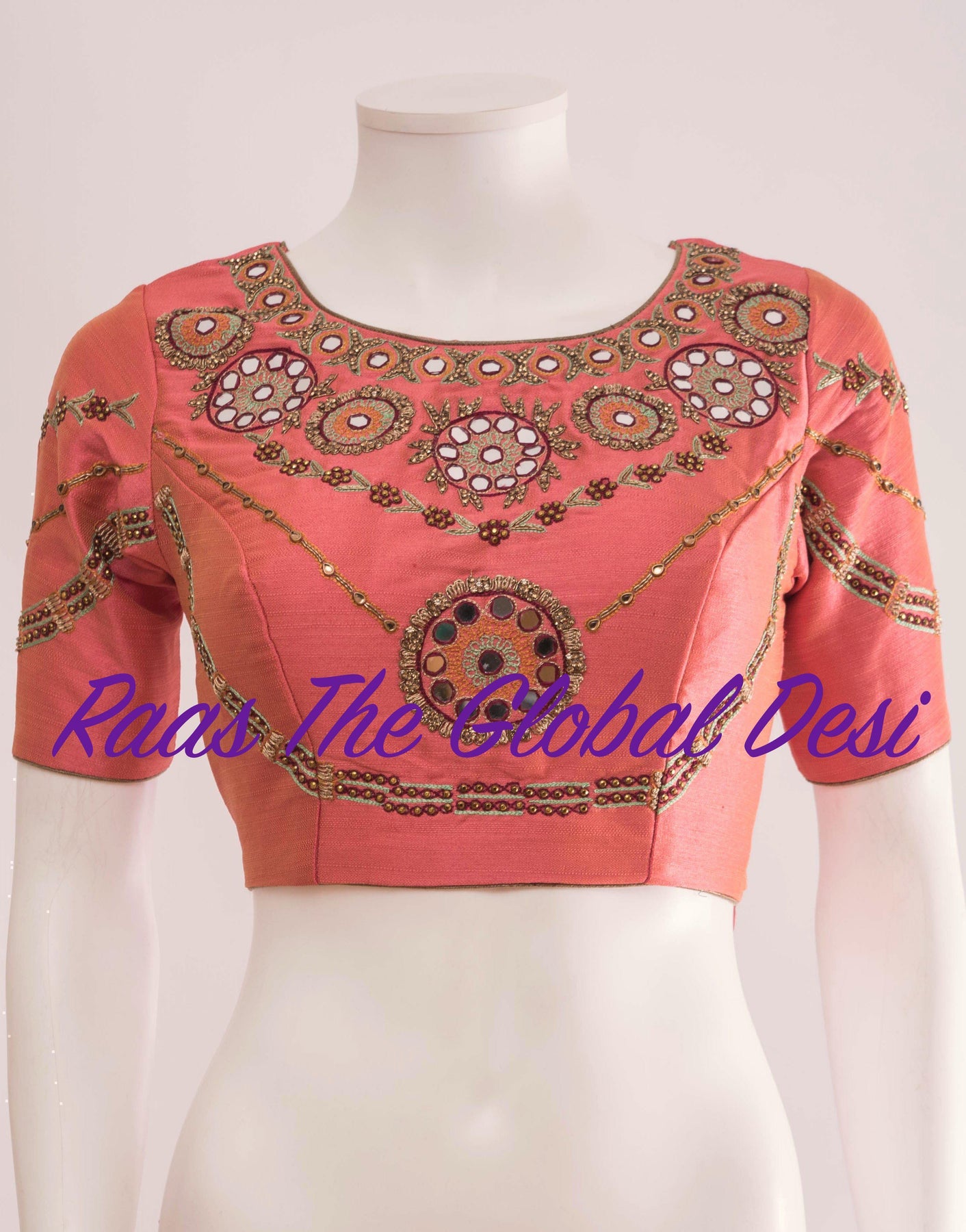 SILK  HANDWORK BLOUSE WITH MIRROR WORK, STONE WORK RESHAM WORK