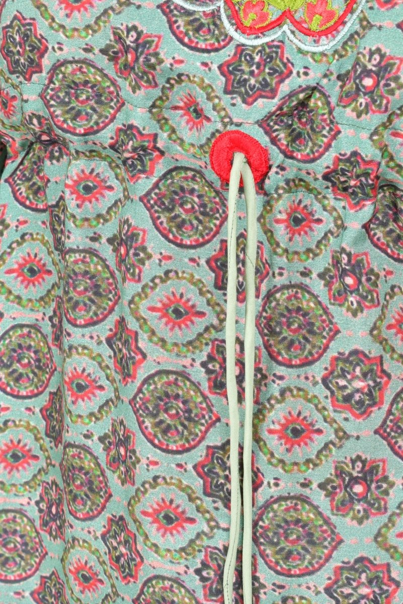 - Specifications: No lining, kaftan/butterfly sleeves, V-neckline, mirror & resham embroidery, tassel tie, tassel hem, ajrakh print, contrast border panels