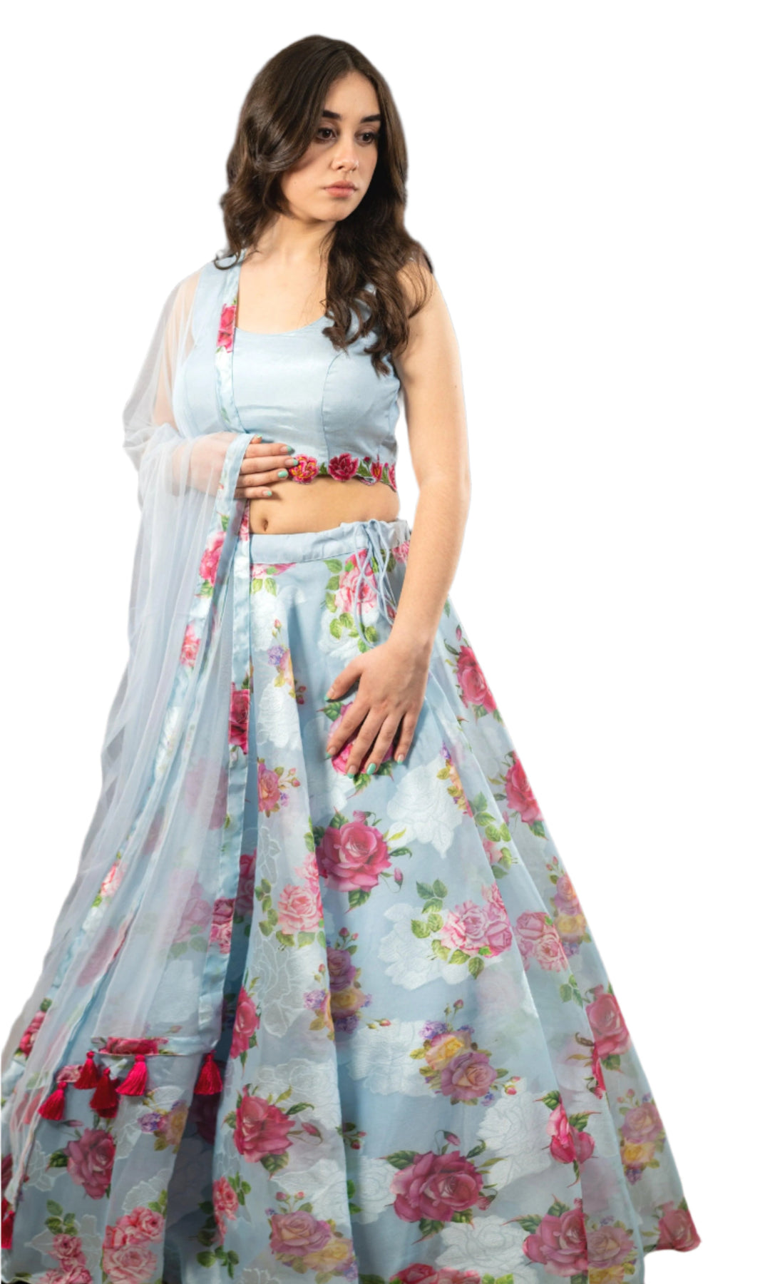 Floral Light Blue Lehenga Choli Set