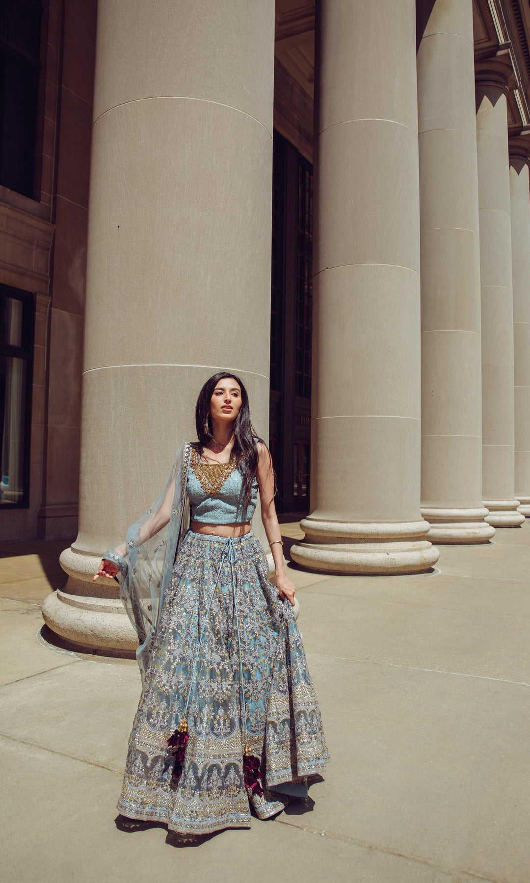 Blue and Gold Hand Embroidered Lehenga Choli Set