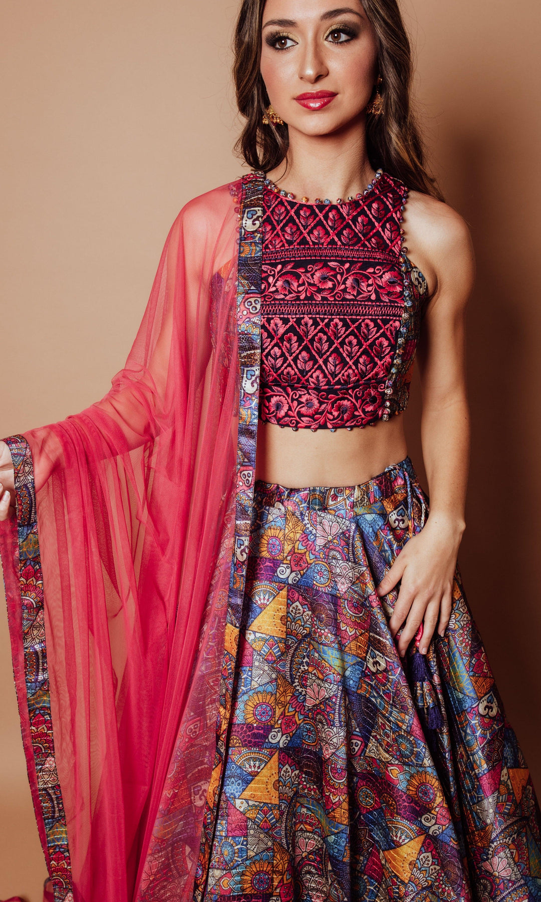 - Components: Blouse, Lehenga, & Dupatta
