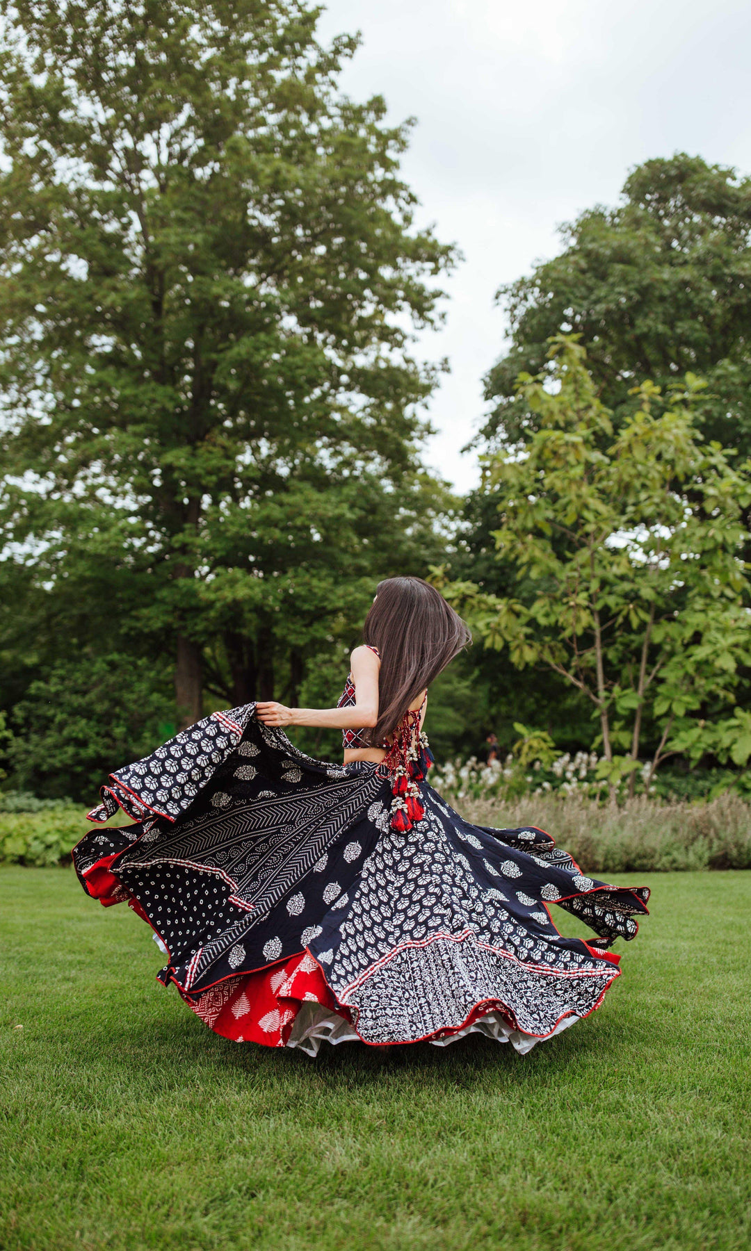 - Chaniya: Approximately 41" in length, 20 meter flare, embroidery and patch work