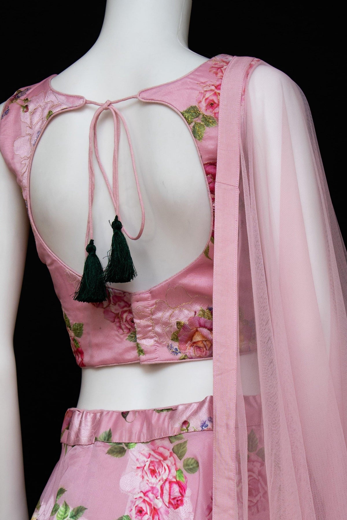 Keep it classy with this Pink Organza Silk Lehenga Choli. The lehenga features beautiful floral patterns, adding a bold yet feminine touch to the ensemble. The complimenting blouse showcases light and delicate floral embroidery for a sophisticated appeal. Completing the Lehenga Choli Set is the pink net dupatta. This lehenga choli set is perfect for weddings, parties, or any special occasion where you want to turn heads with its understated floral elegance.