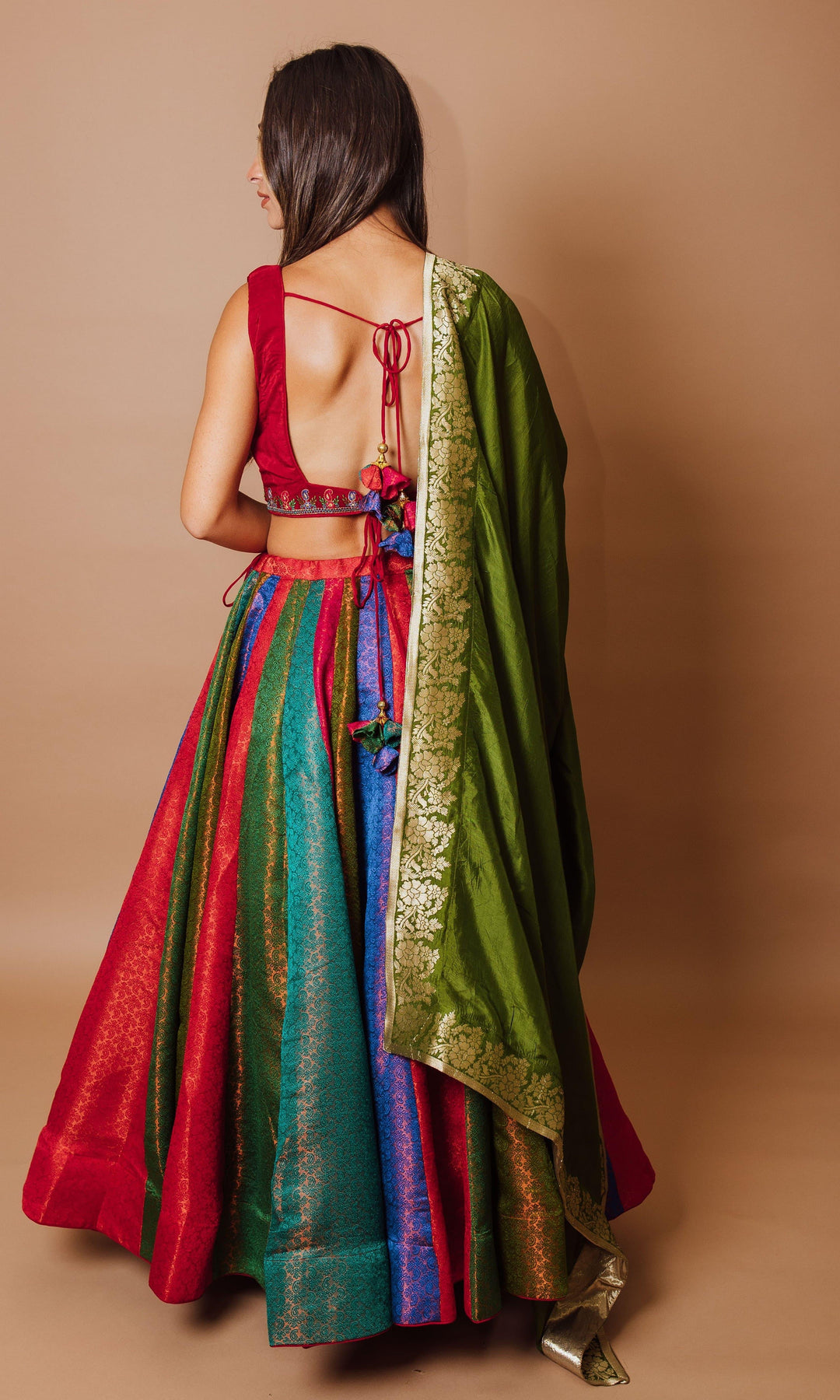 - Fabric: Jacquard Silk (Lehenga), Silk (Blouse & Dupatta)