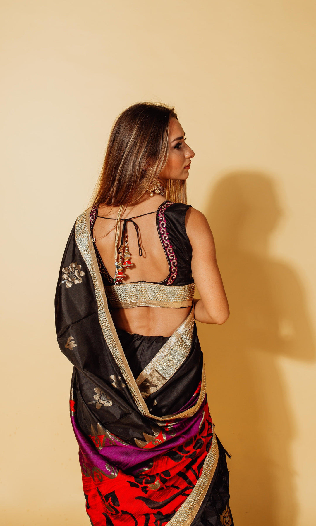 Saree comes with stitched designer blouse. Saree is ready to wear.