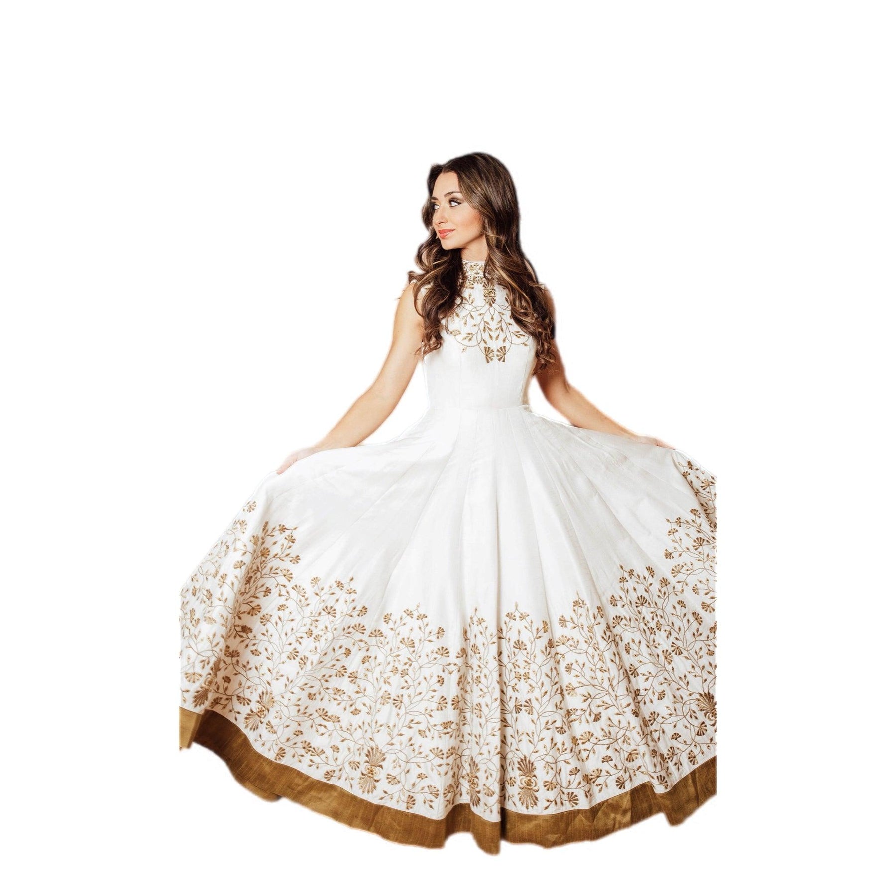 Anita White Gown with Embroidered Torso and Hem - Raas