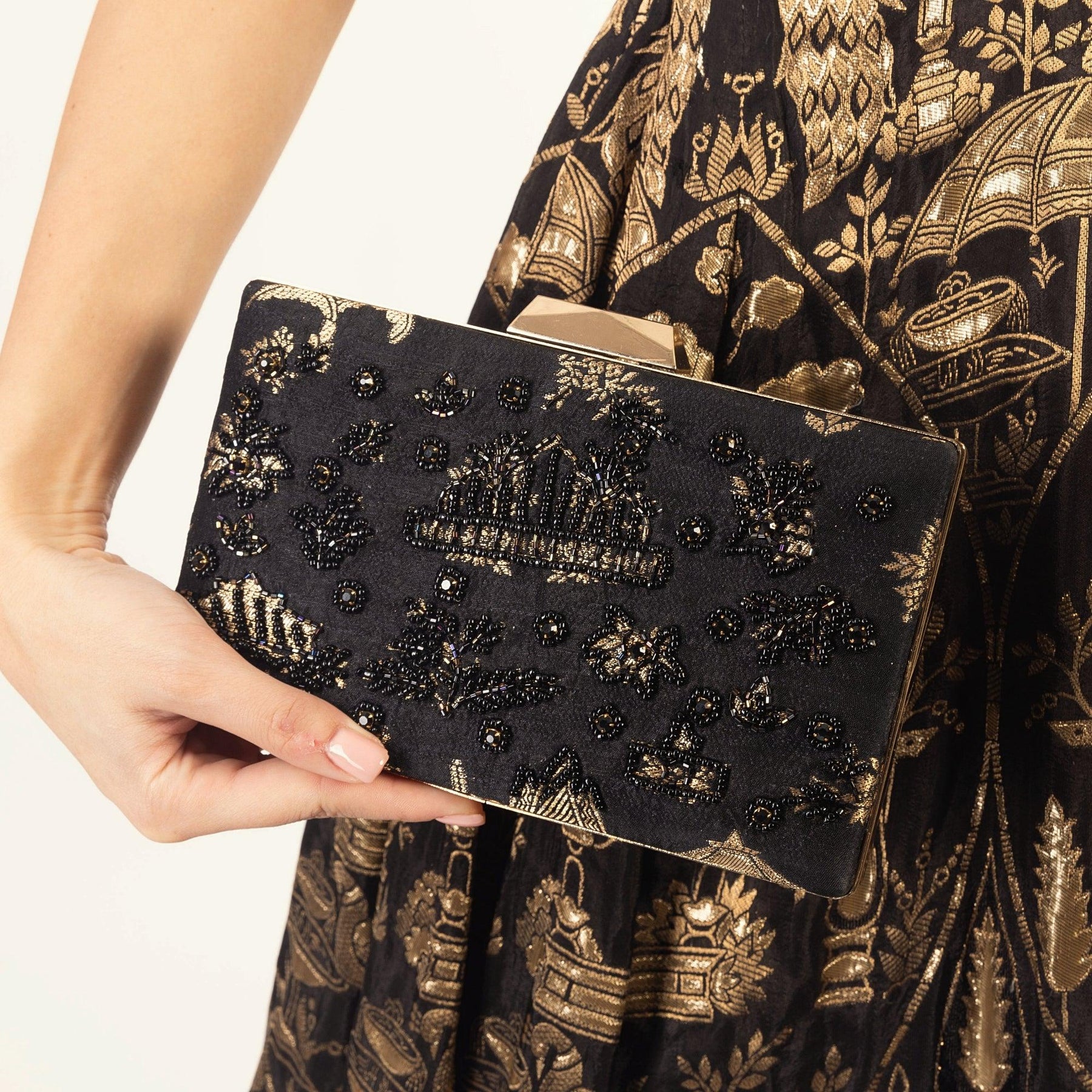 Black Clutch With Hand embroidery-Raas USA