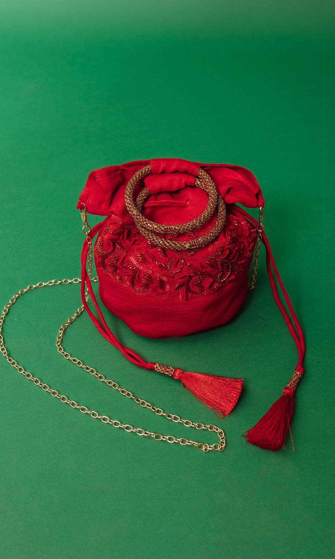 • Add a vibrant, chic flair to your night out ensemble with a red party clutch / sling bag. Make a statement wherever you go with the perfect hue with this classic and stylish hand embroidered batwa bag made from raw silk. Shop now and find the perfect accessory for an unforgettable evening.