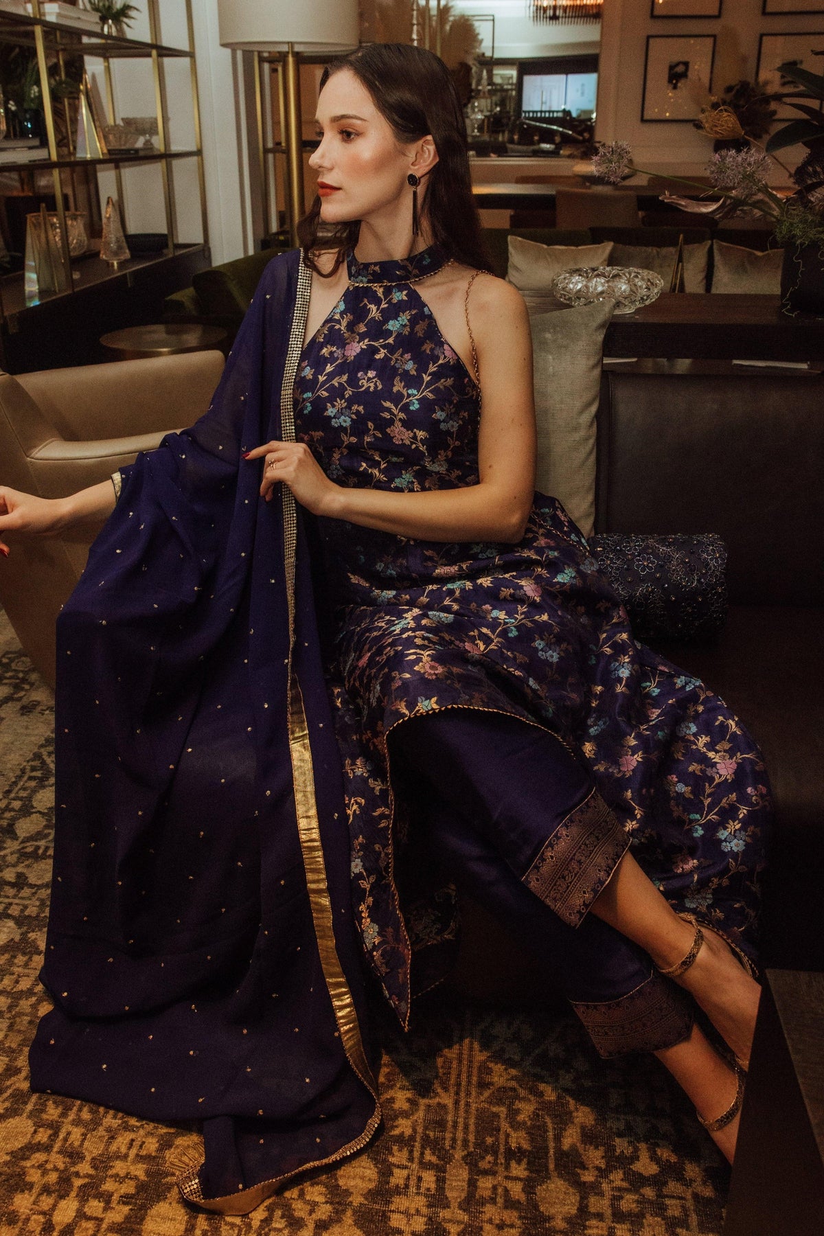 - Kameez: Fully lined, halter neck, back zipper & string tie