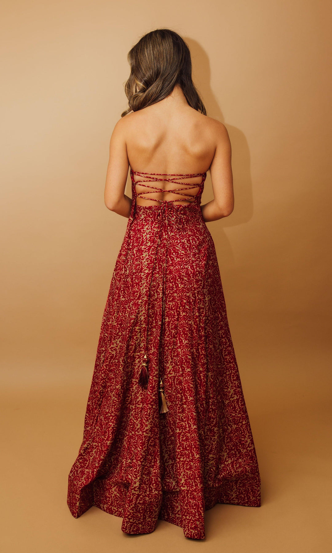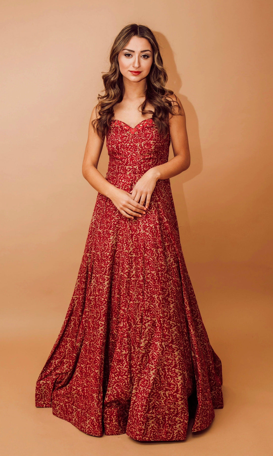 The Sia Long Dress is a striking blend of comfort and style, crafted from a luxurious cotton-silk fabric. The convertible designs means that it can be worn off the shoulder for a flowing gown-like look, or on the shoulder with the provided tie strings for a more structured, elegant appearance. The embroidered neckline adds an artisanal touch, while the all-over patterned design creates a visually captivating effect. Perfect for a any special occasion, the Sia Long Dress effortlessly combines sophistication with a relaxed, yet polished vibe.