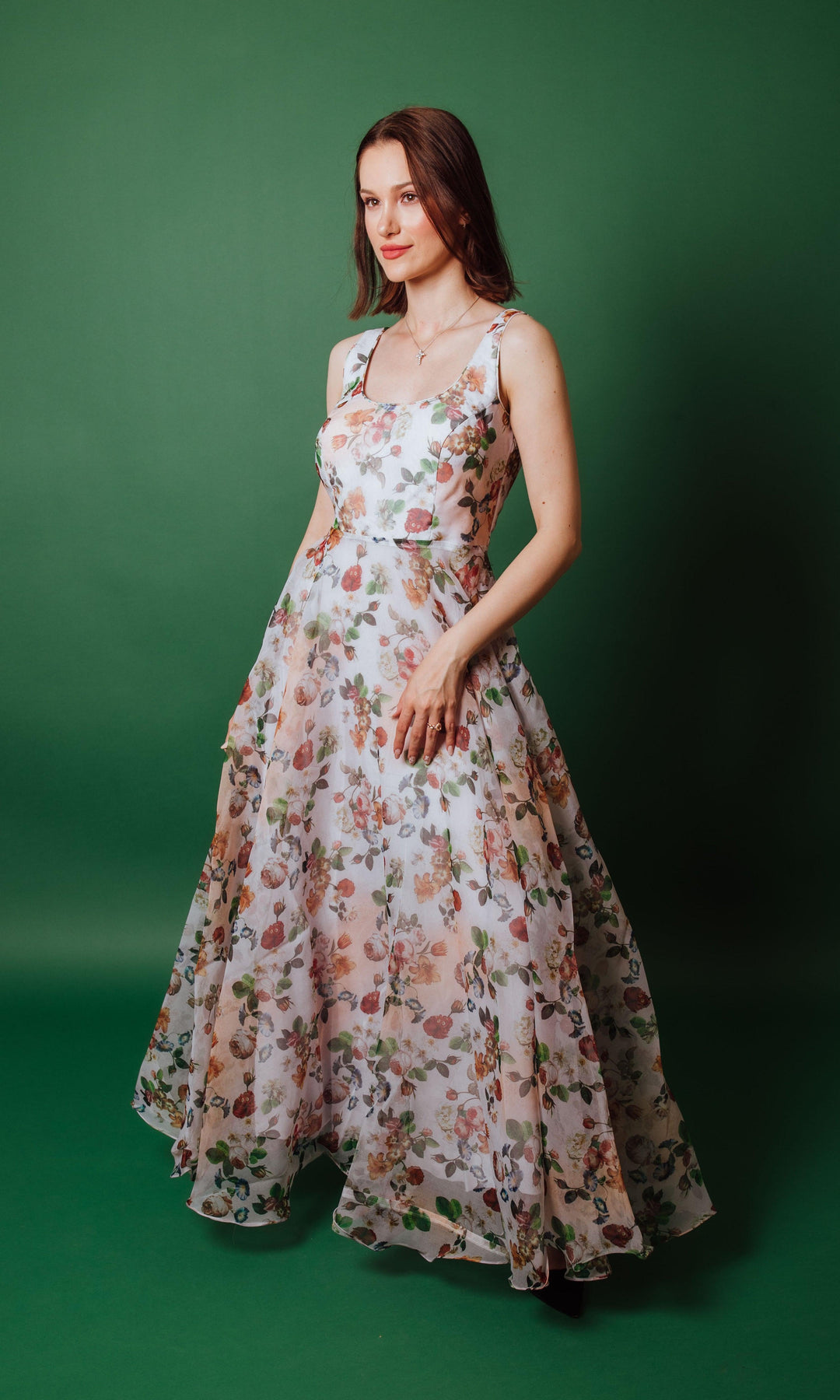 • Specifications: Fully lined, sleeveless, open back with zipper & string tie