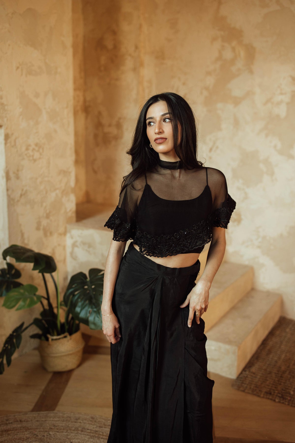 BLR1020 Kai Black Silk Chiffon Cape and Blouse