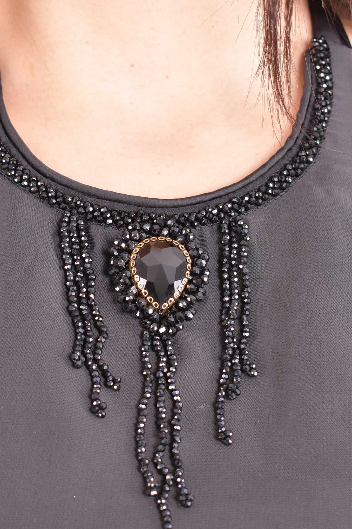 - Blouse: Sleeveless, crystal embellishment, lace-up back, fully lined
