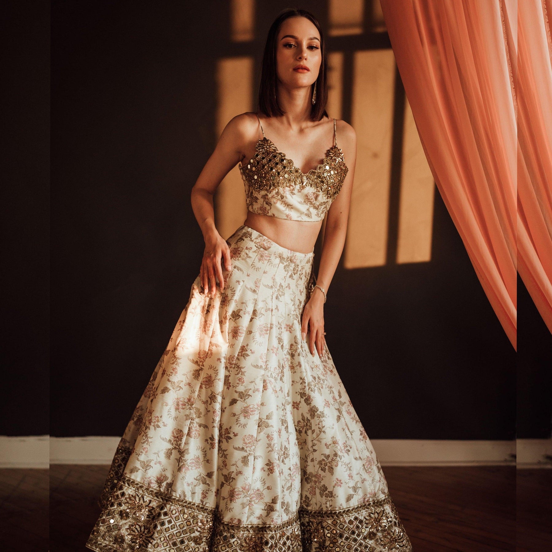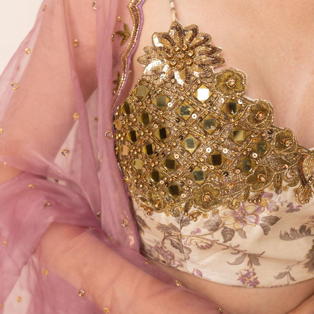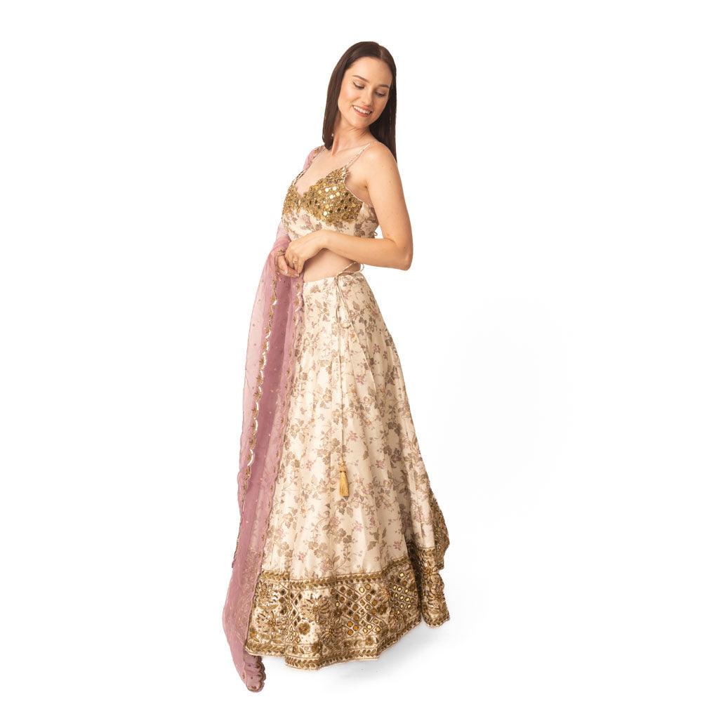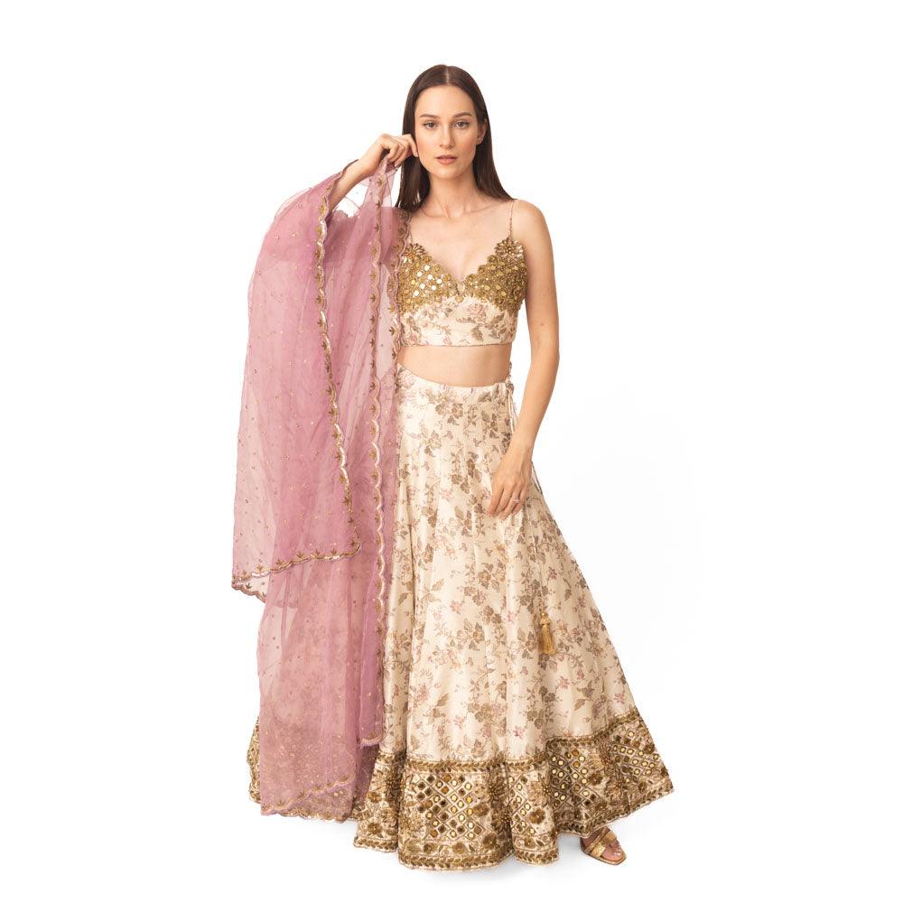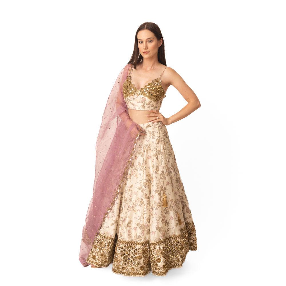 Kimana Mirror and Floral Lehenga Set - Raas