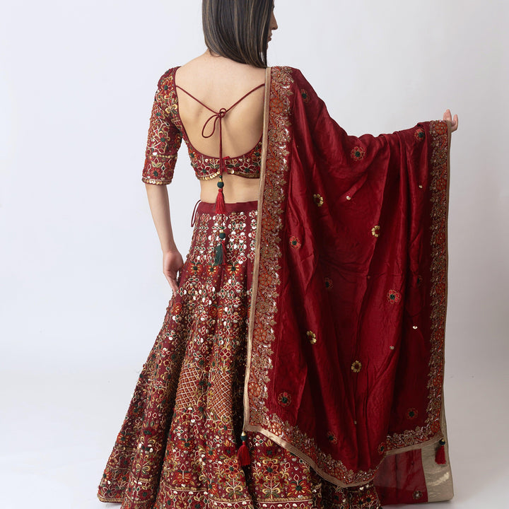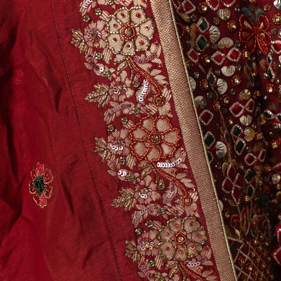 A symbol of timeless craftmanship, the Misha Red Lehenga Choli Set is hand stiched from premium red silk. The blouse and lehenga are both heavily hand-embroidered with intricate embellishments, sequins, and resham work, creating a stunning play of textures and shimmer. Every detail is hand-stitched to perfection, adding an element of artistry to this traditional ensemble. Completing the Misha Red Lehenga Choli Set is a matching red silk embroidered dupatta.