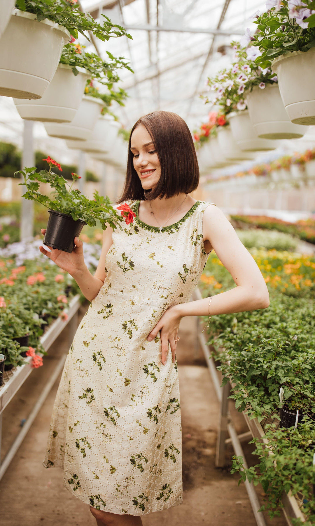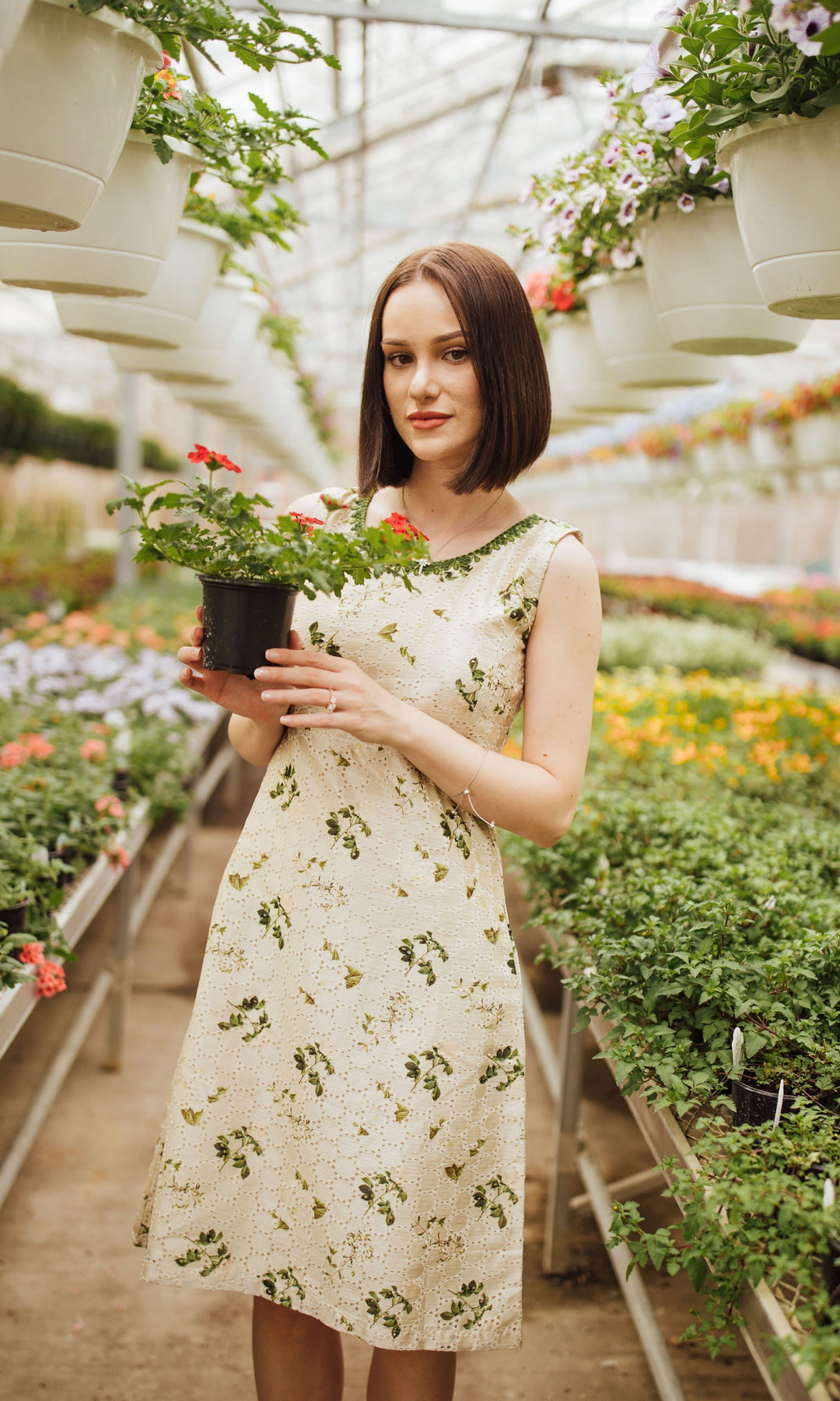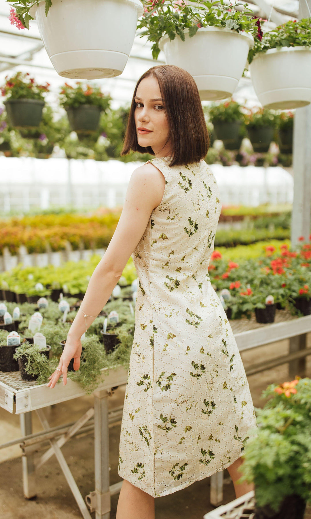 - Specifications: Fully lined, sleeveless, midi silhouette, eyelet embroidery, back zipper