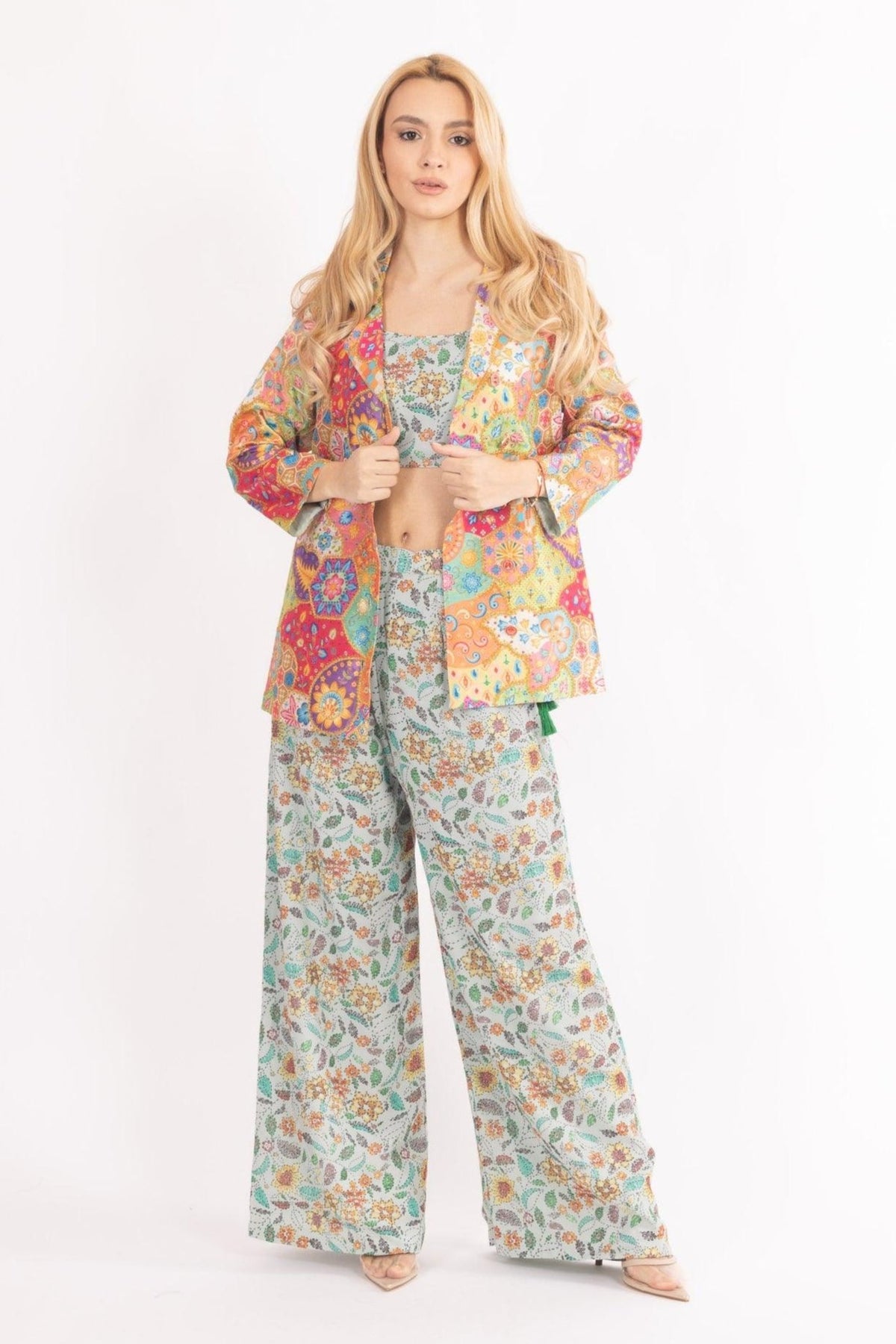 - Care: Cold wash (Blouse & Pant), Professional dry clean only (Jacket)