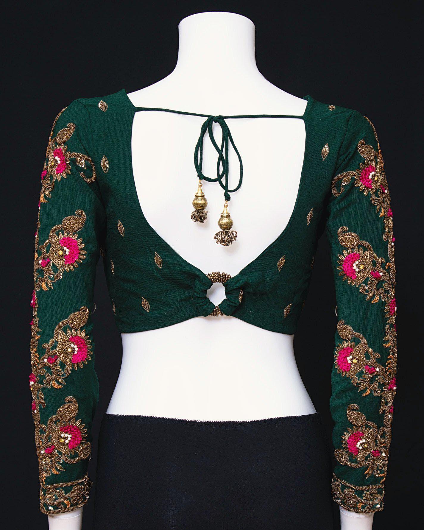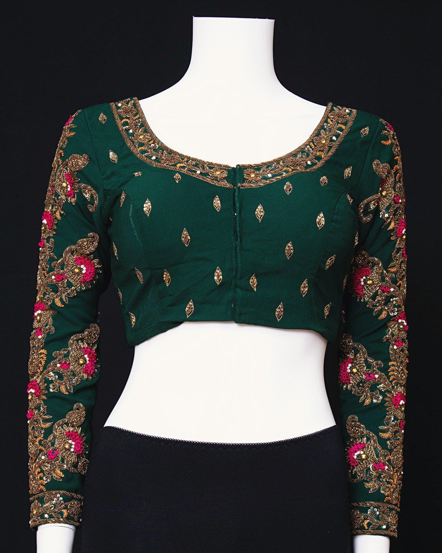 Wear this designer handwork,zardoshi and kasab with resham work blouse with matching or contrast saree or lehenga.Possibilities are endless. Blouse fabric is slightly stretch for extra comfort.