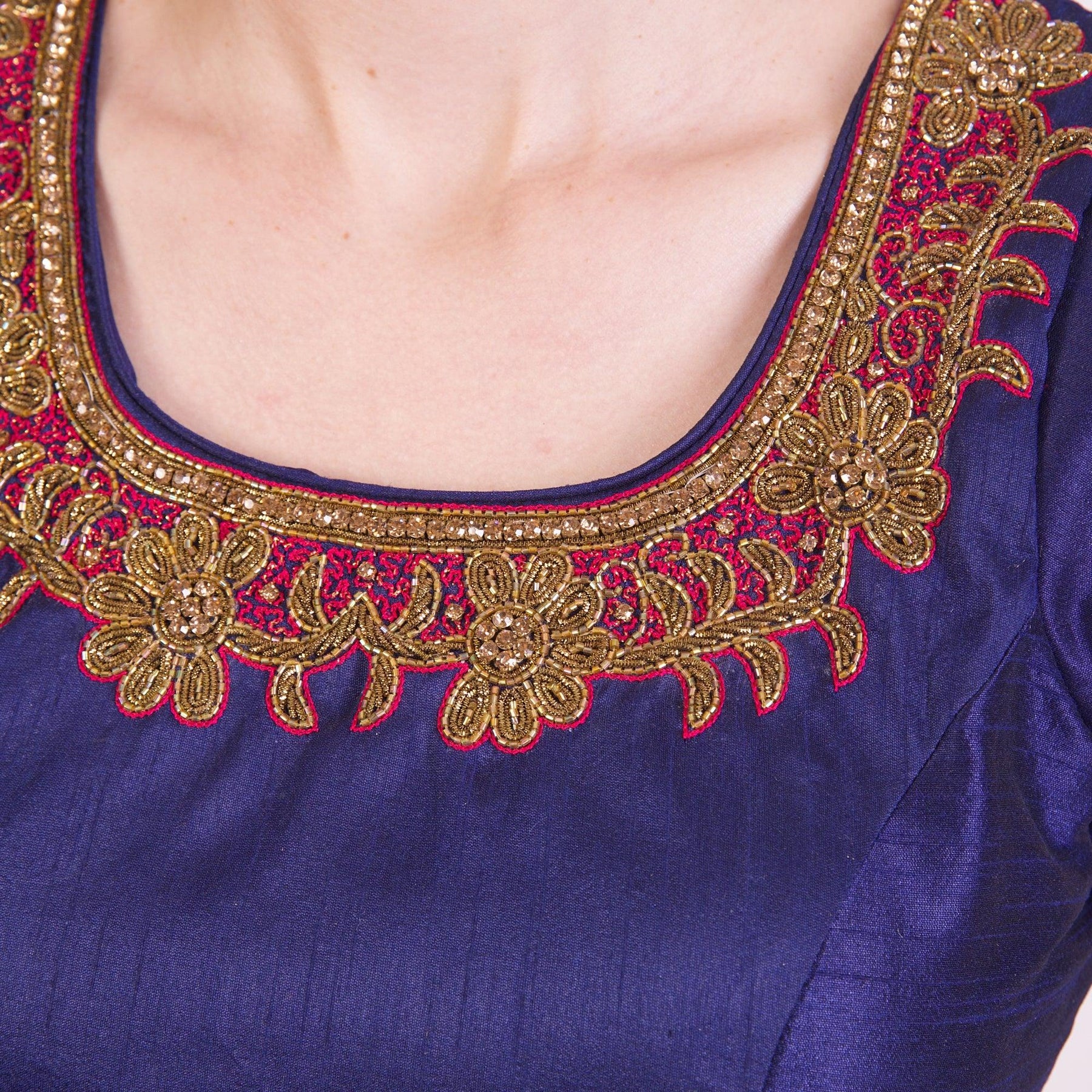 - Specifications: Fully lined, hand embroidered, cap sleeves, hook closure, square neck
