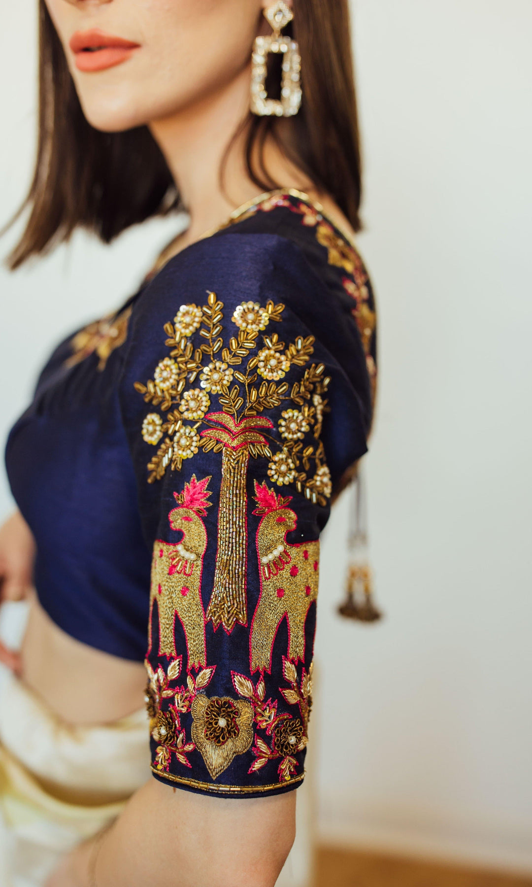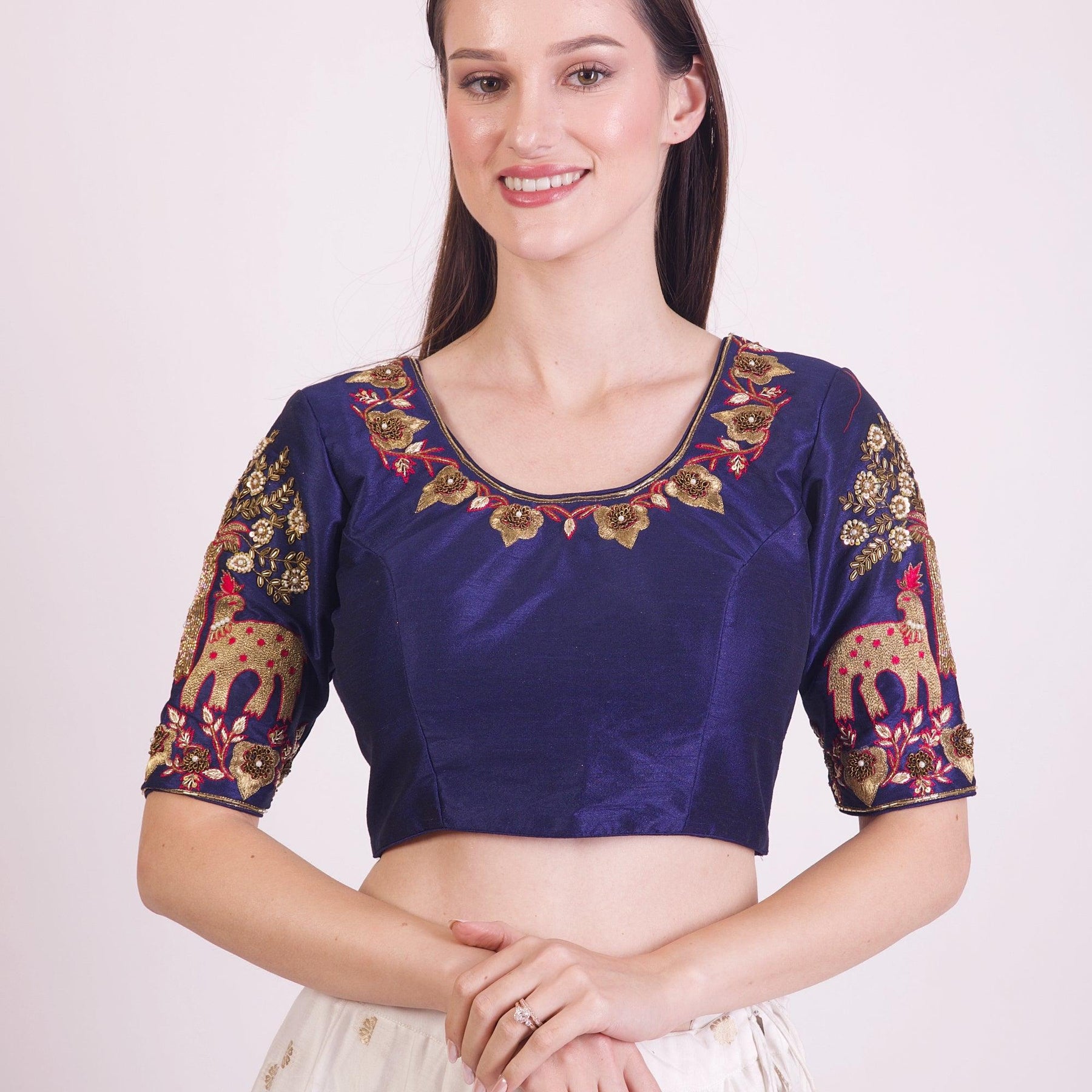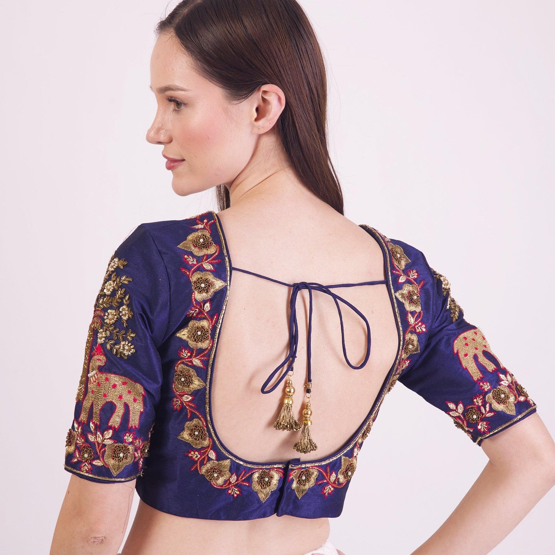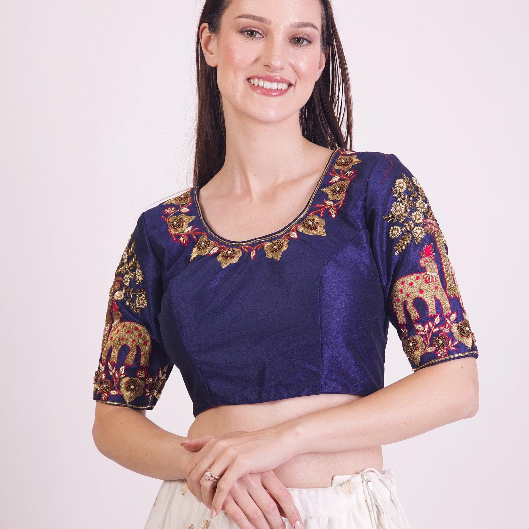 Designer silk blouse with heavy embroidery work hand work