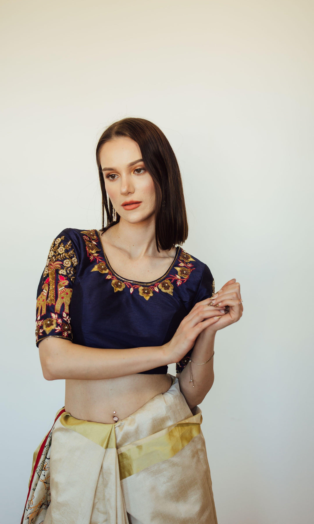 Alteration: We offer complimentary side fittings for select gowns, dresses, and blouses. After placing your order, our team will contact you within 24 hours to confirm your measurements and check if you require side fittings. Alterations for length, waist, and side attachments for certain products are available for an additional fee. To request alterations, please leave a note at checkout or contact our customer service team via call, text, or WhatsApp at +1 (630)-407-7419.