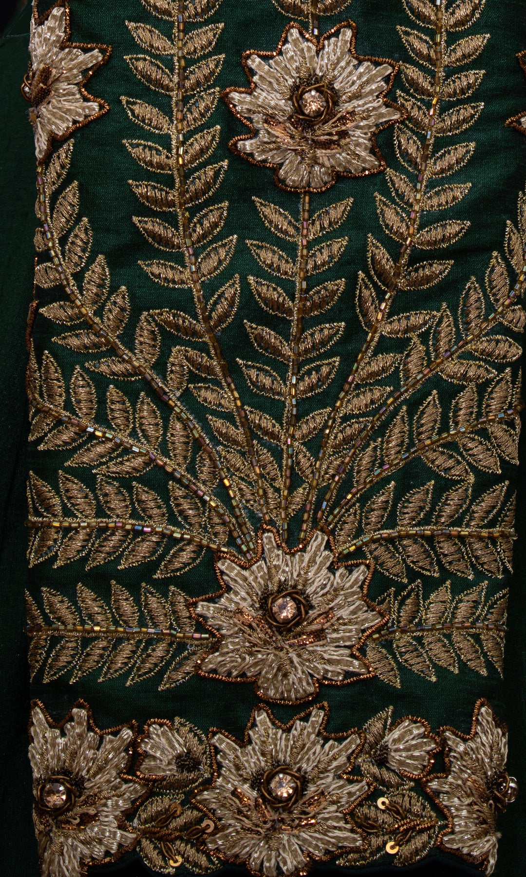 - Blouse: Long sleeves, fully lined; Embroidered with gota pati, stone, zardoshi & sequins work