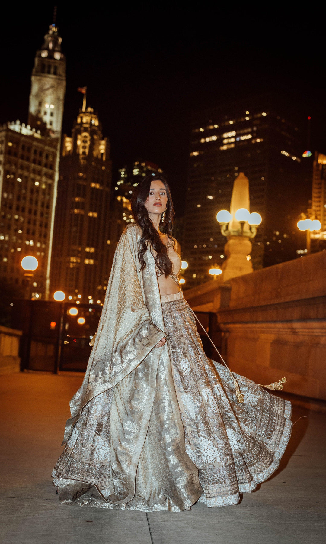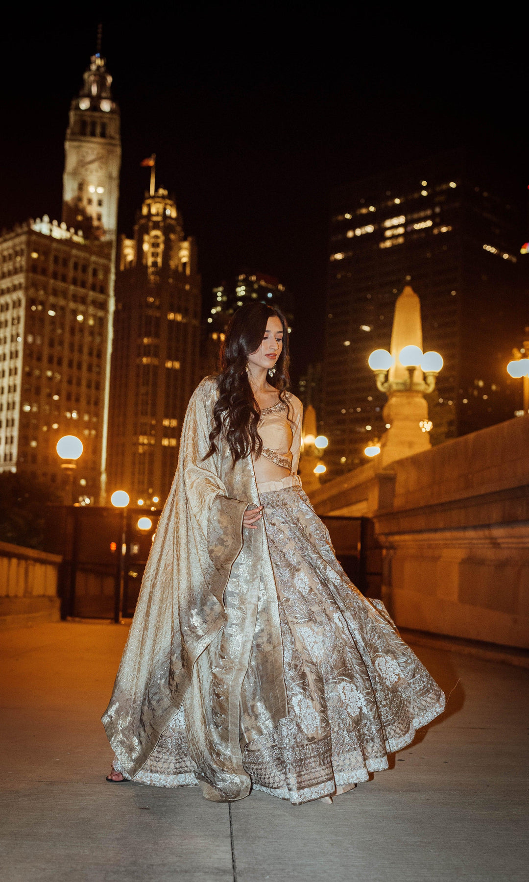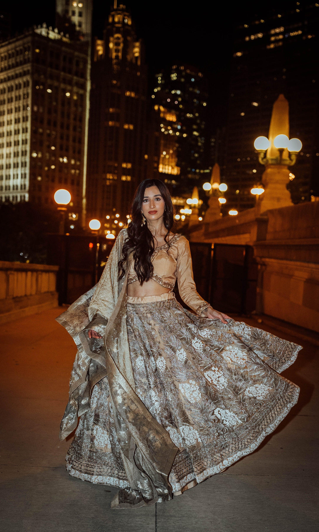 - Lehenga: Approximately 41" in length, heavily embroidered