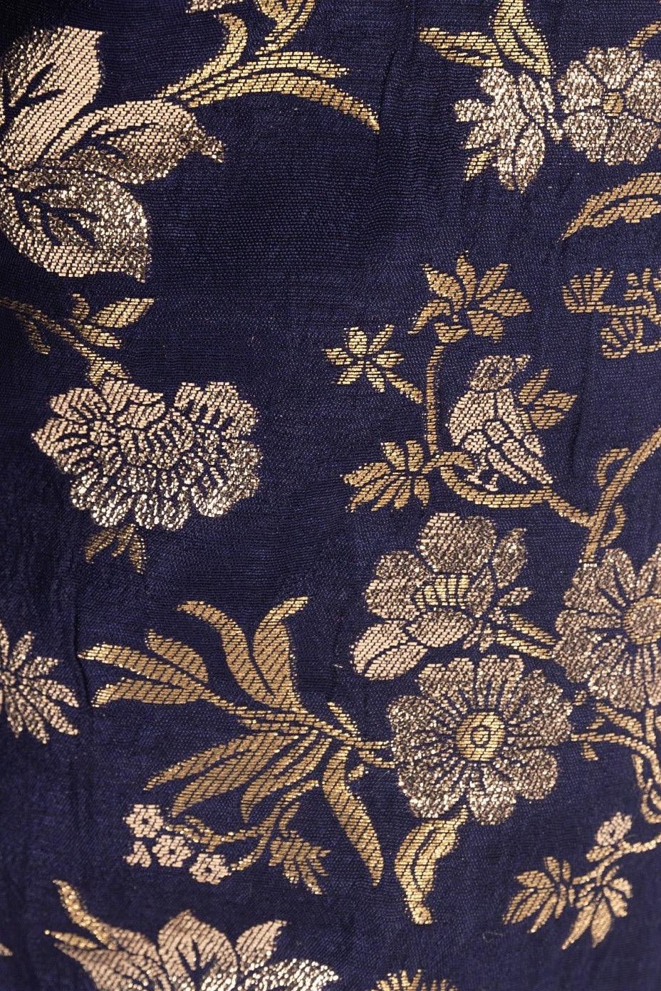 The Cyanara Navy Salwar Kameez Suit Set is a striking ensemble from our Orové collection. The kameez, crafted from georgette, features a one-shoulder and high-low design. The salwar is crafted from jacquard silk and contains golden patterns that contrast beautifully with the rich navy hue. The Cyanara Blue Salwar Kameez Suit Set is perfect for those seeking a blend of traditional elegance and contemporary style.
