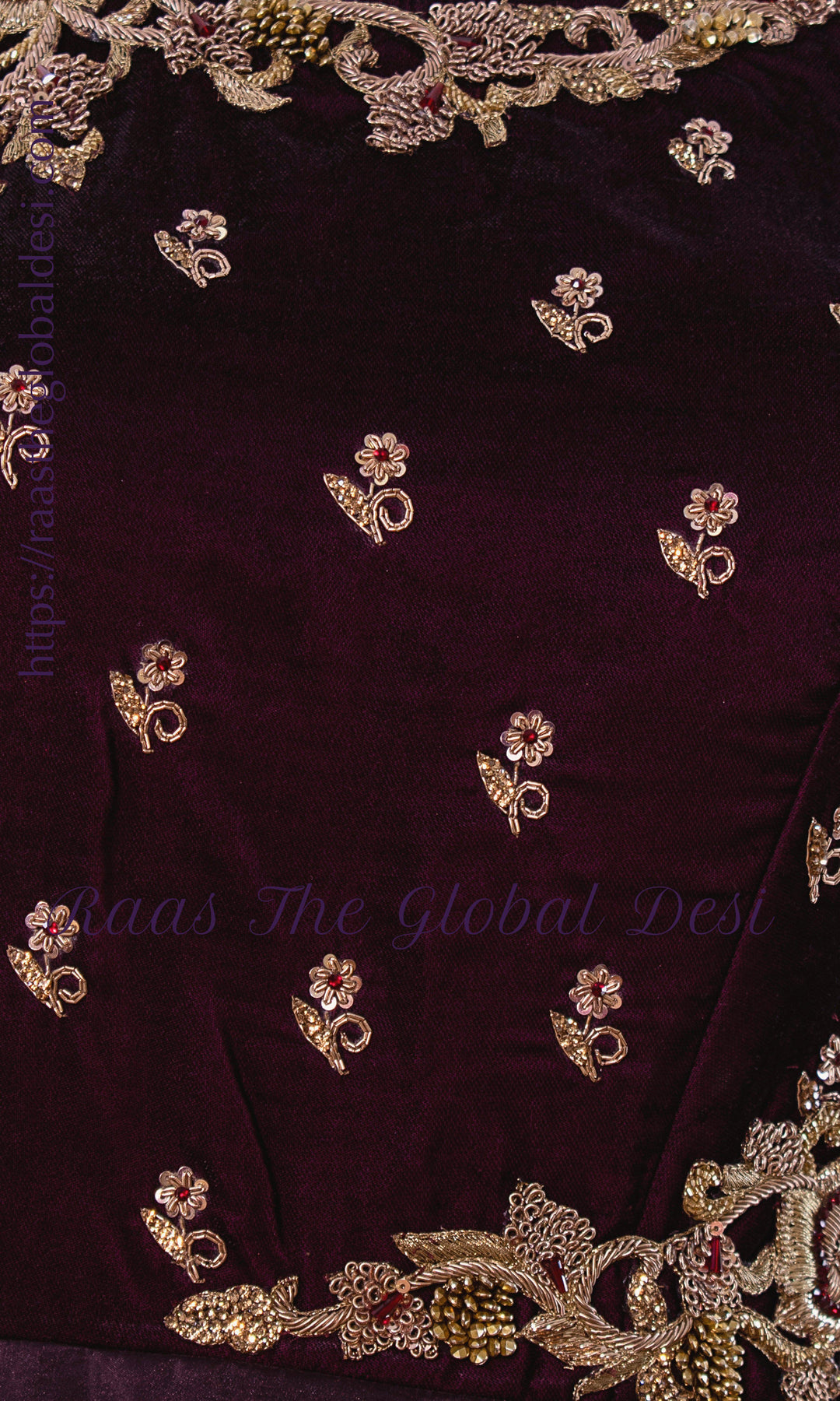 - Specifications: Fully lined, cold shoulder, hand embroidered, zari work, side zipper, back hook closure