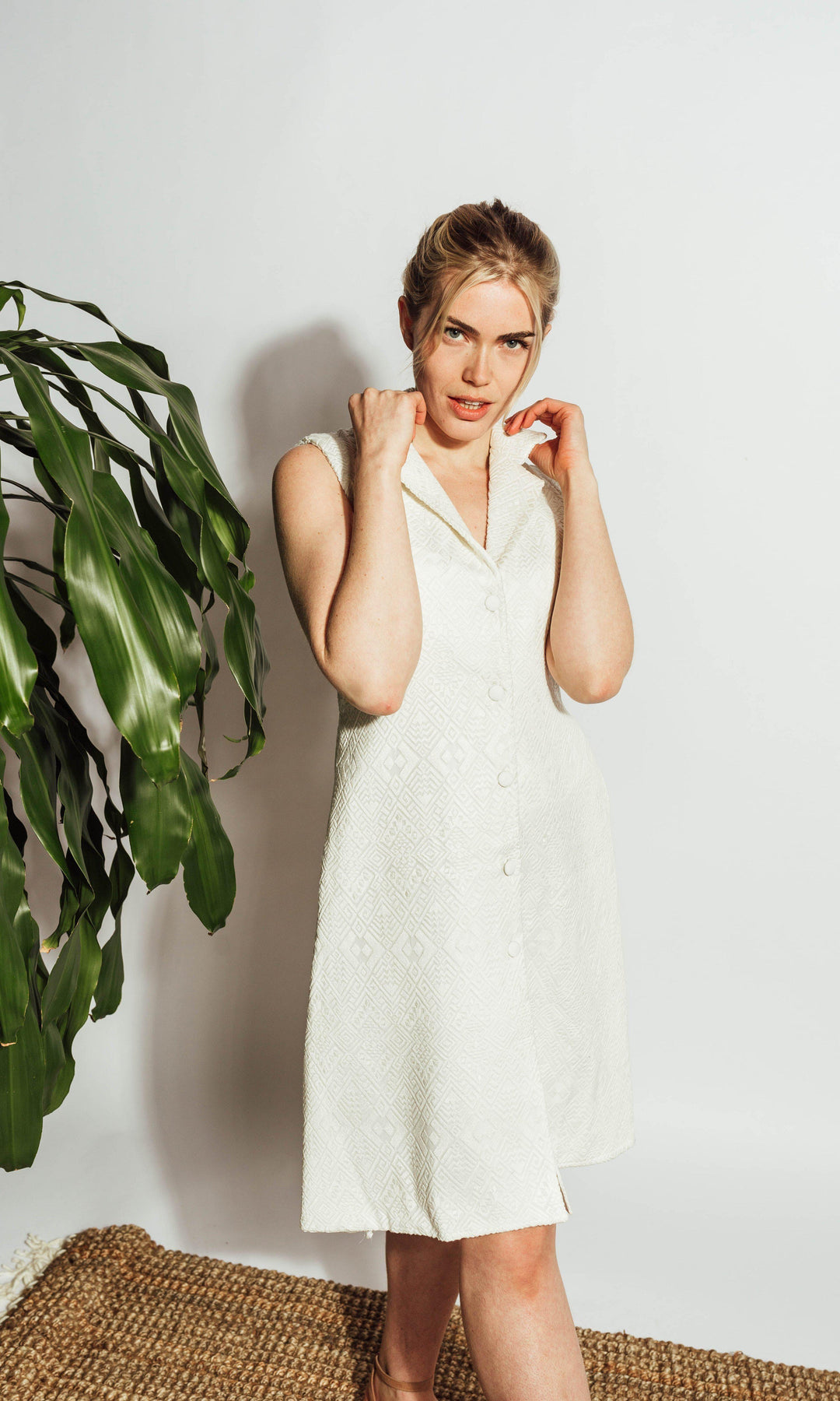 Aviana White Blazer Dress with Self-Thread Embroidery