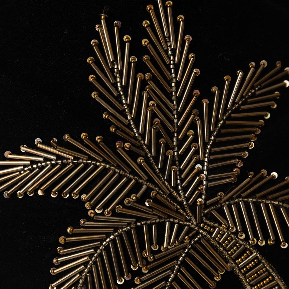 The Halona Mini Black Dress is a luxurious velvet piece featuring exquisite hand embroidery. The hand-embroidered neckline and Varli hand-embroidery on the skirt are meticulously crafted to add a rich, artisanal touch to the design. The cut-dana embroidered hem further enhances the richness of this dress. The golden embroidery over the luxurious black velvet creates a classy, elegant look, while the high neck adds an extra element of sophistication. The Halona Mini Black Dress is perfect for special occasions where you want to look chic while turning heads with its bold, artisanal design.