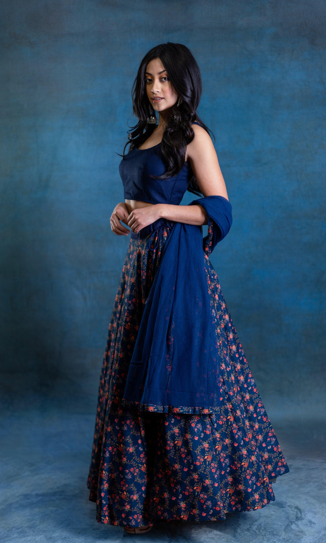 You would look like a diva when you dress yourself in this blue simple lehenga choli. The lehenga is made of digital print linen fabric, comes along with choli. Specially designed to wear in weddings, functions, engagements, ceremonies ,navratri and special occasions. Teaming this dress with stylish jewellery . This lehenga choli set is accompanied with matching dupatta. Accessories shown is only display purpose