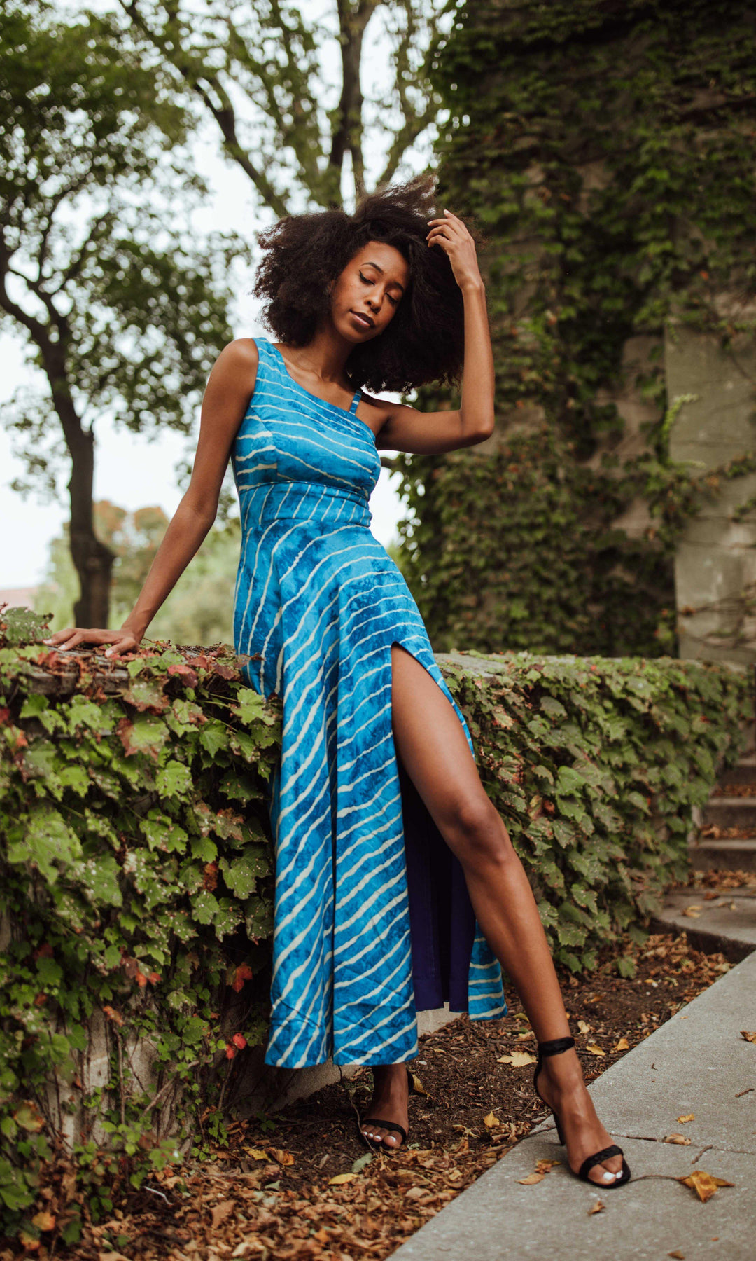 - Specifications: Fully lined, sleeveless, maxi silhouette, round neck, back zipper, one slit