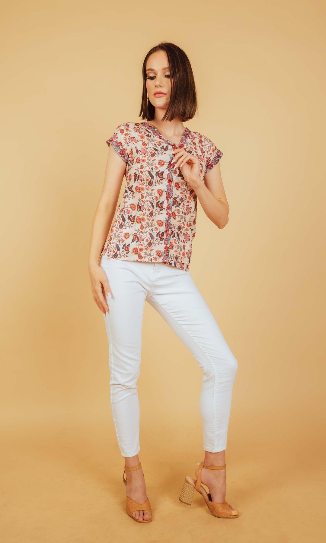 Nivea Tan Top with Floral Embroidery