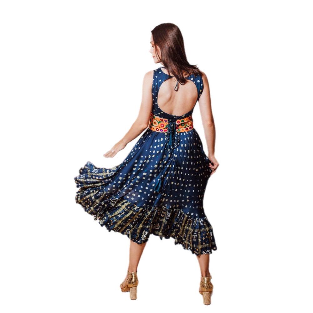 Evelyn Blue Bandhani Tte Dye Dress with Ruffle Trim