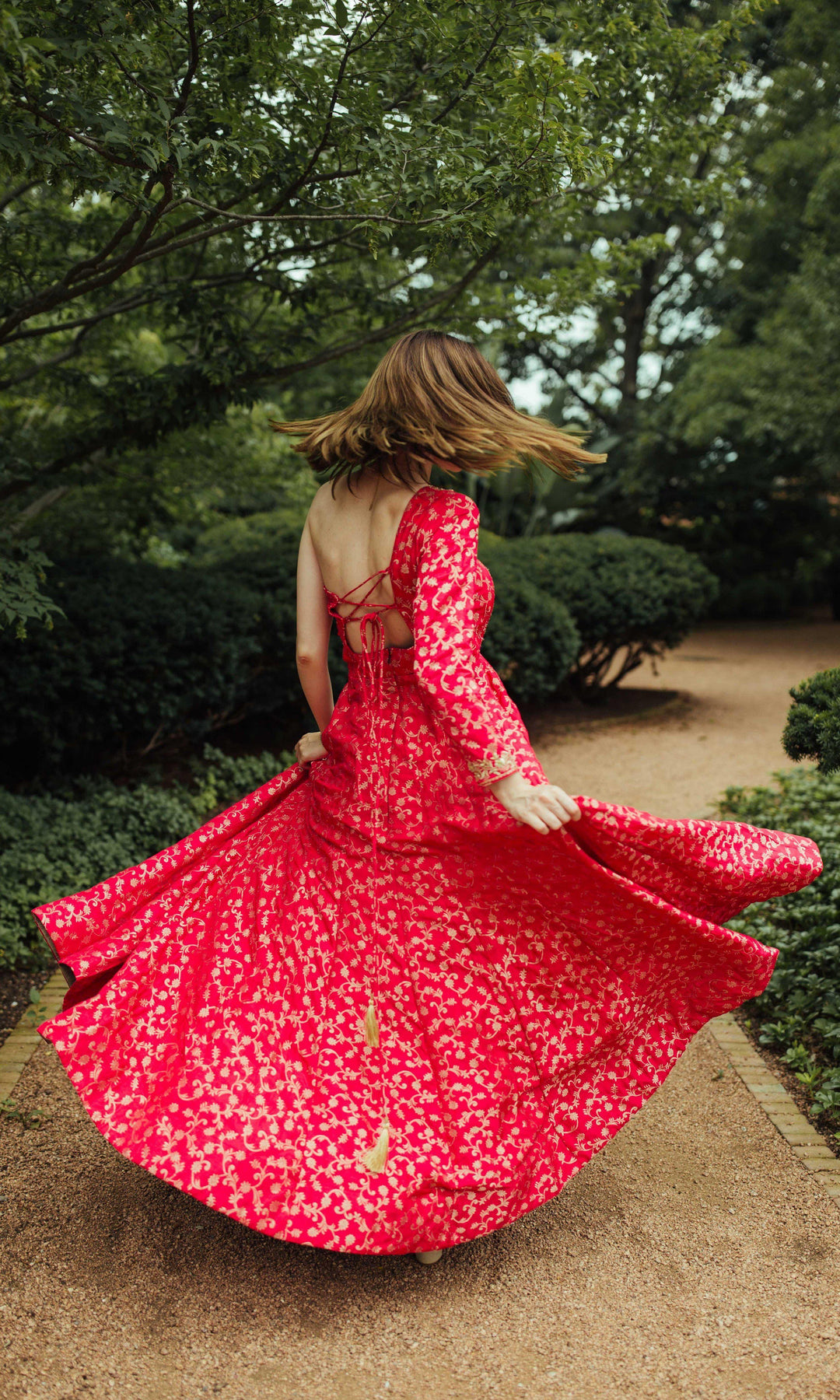 Turn heads with the Akari Pink One-Shoulder Dress, a perfect blend of elegance and charm. Made from luxurious silk brocade in a deep pink shade, the Akari Long Dress showcases intricate all-over patterns that are subtle yet captivating. The hand embroidered neckline adds a handcrafted, artisanal touch. The A-line design flares beautifully from the waist to create a flattering and voluminous silhouette. The Akari One Shoulder Dress is perfect for a romantic Valentine's Day celebration or any other special occasion where you want to stand out while staying effortlessly classy.